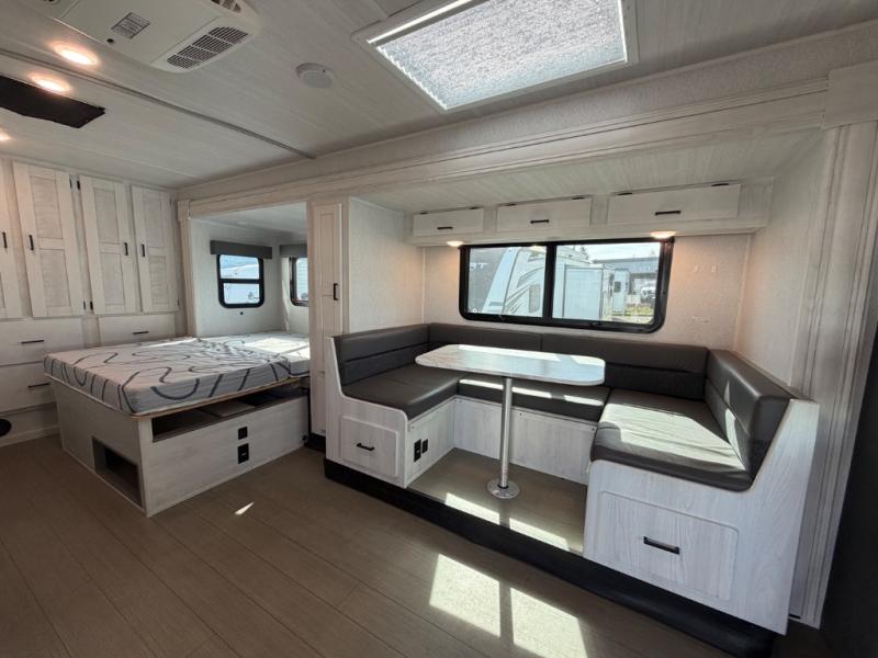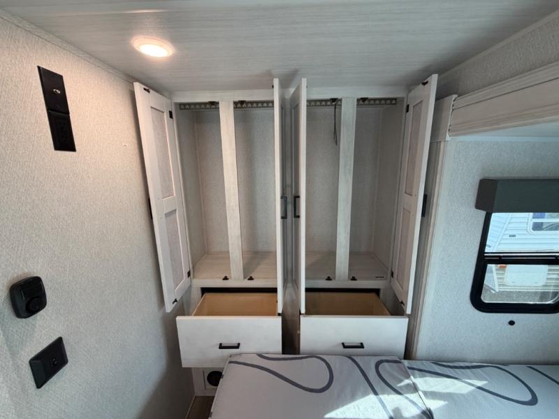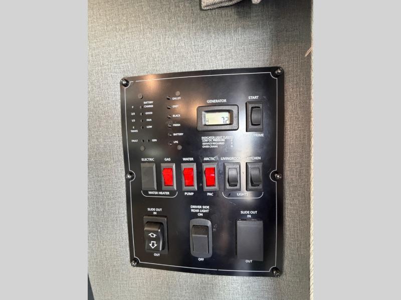 Whether you're traveling to the Grand Canyon or your local state park, you'll enjoy every minute in this coach! The swivel captain's seats can become a part of the living area once you park, and your guests can sit around the U-shaped dinette within the full-wall slide. There is a swing arm TV in the cab-over bunk to keep everyone entertained, or you can all head outdoors to sit under the 16' awning. Head back inside to rest on the queen bed that folds up for more space, and the bedroom wardrobe will allow you to keep your clothes and shoes tidy!