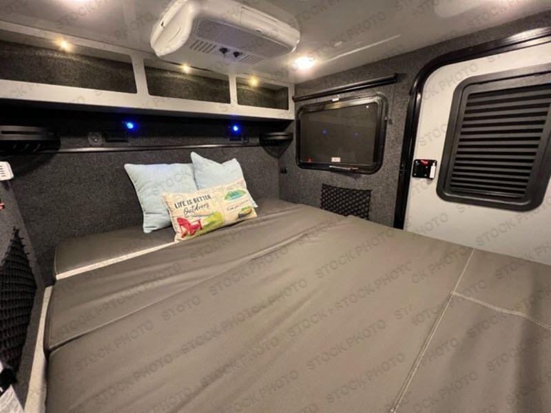 The Encore RV ROG travel trailer has a smaller size and a rugged design so that you can tow with ease and visit remote spots that other campers can't. While you go off-grid, you'll stay comfortable with the amenities provided by the ROG. The exterior is outfitted with aluminum wheels, four stabilizer jacks, under-frame amber accent lights, an all-aluminum tube construction, and an all-aluminum chassis. There are a couple of options that will entice you, like the optional roof rack system with 74" crossbars to help you transport some bikes or kayaks or the optional 11,000 BTU roof mount A/C. Included as standard are USB charging ports that will help you keep your electronics full of power, and the vapor bond insulation will stop the cold or heat from disrupting your comfort level on the interior.