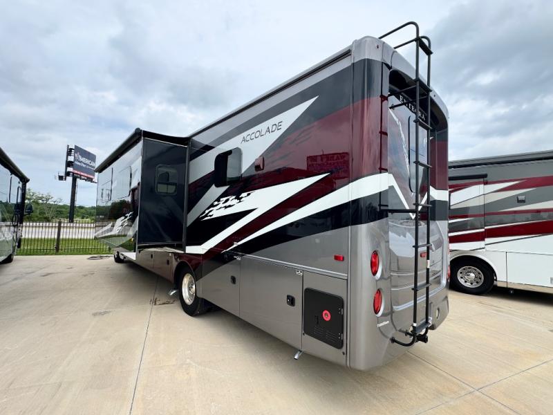 Strength and luxury come together perfectly to bring you the Accolade Super C diesel motorhome by Entegra Coach. The E-Z Drive Premier includes a computer-balanced driveshaft, a heavy-duty rear stabilizer bar, SACHS shocks, and more to provide a smooth drive. You'll be able to feel the power behind the Cummins ISB 6.7L diesel engine with 360 HP and 800 ft. lb. torque, plus each model sits on the advanced Freightliner S2RV chassis. The cockpit is every captain's dream with its Sony infotainment center, backup and side-view cameras, 6-way power driver and passenger seats, and much more. Step inside to find vinyl plank flooring, LED-lit solid-surface kitchen countertops, and high-intensity recessed LED ceiling lights to name a few comforts. The Accolade also includes many convenient amenities to make each trip enjoyable, like the water filtration system, the Winegard in-motion satellite dish, and the automatic hydraulic leveling jacks!
