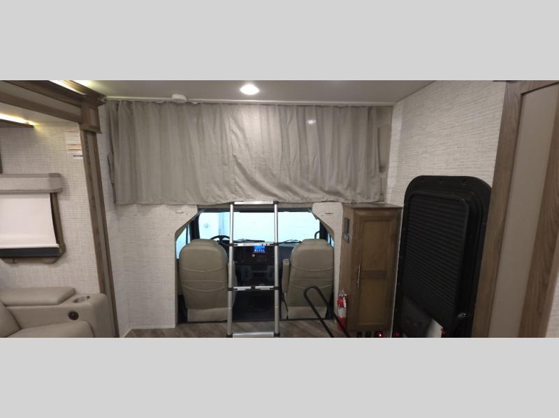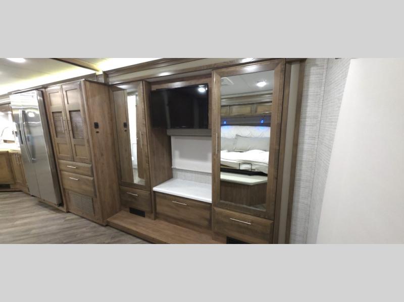 Built on the Freightliner S2RV chassis and powered by a Cummins ISB 6.7L diesel engine delivering 360 horsepower and 800 pound-feet of torque, the Accolade 37M offers impressive strength and smooth handling. Entegra Coach’s E-Z Drive Premier system enhances ride quality with advanced suspension components for a confident driving experience. The cockpit features modern technology including a Sony infotainment center, backup and side-view cameras, and power-adjustable seats for both driver and passenger.