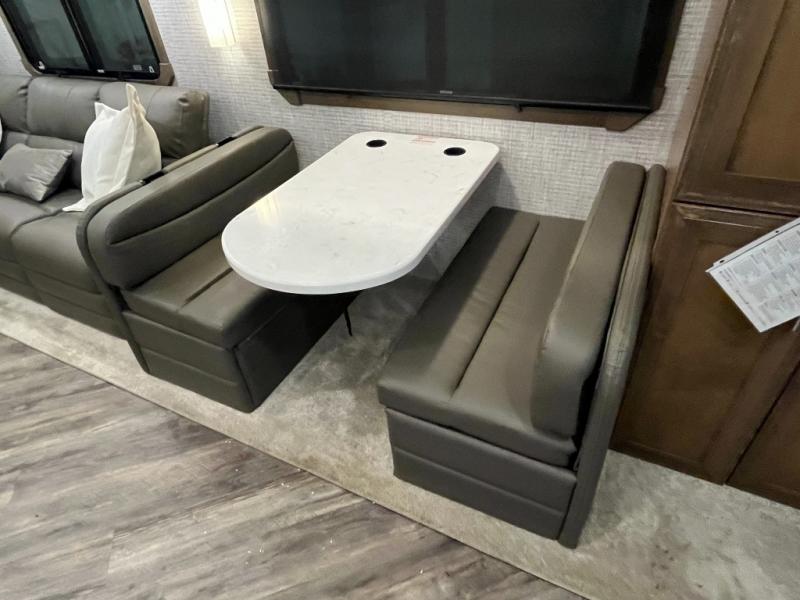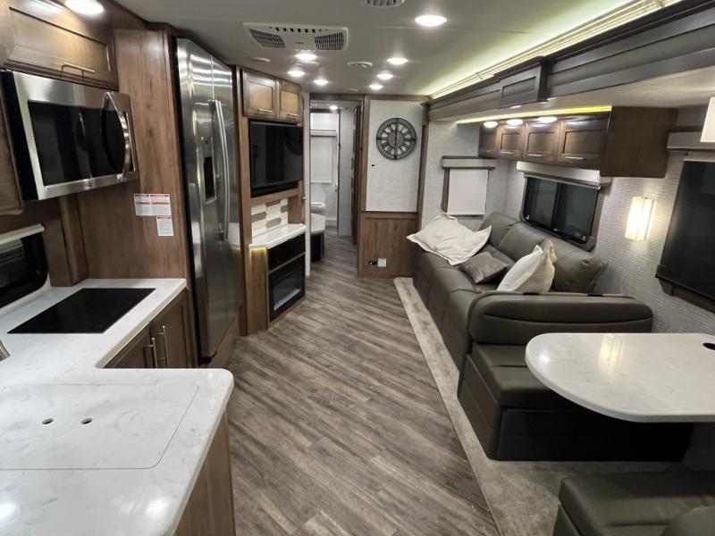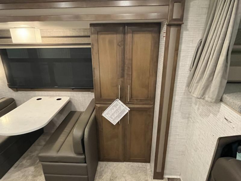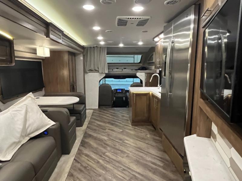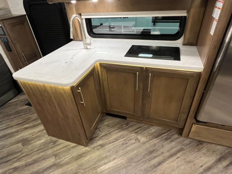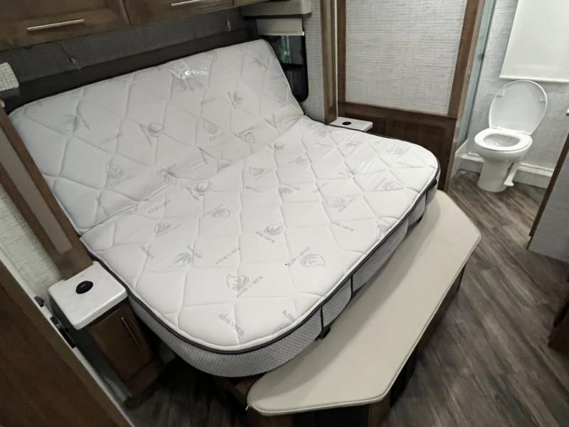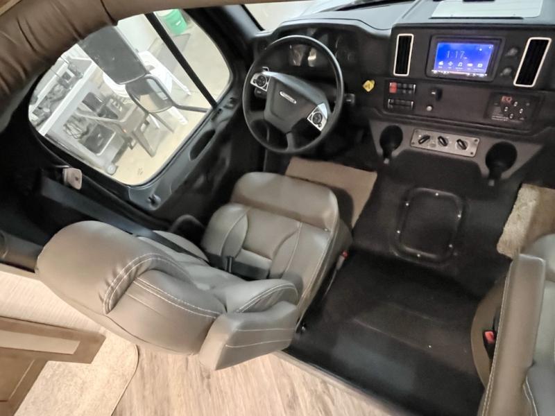 You will appreciate all of the conveniences throughout this motorhome starting with the carpeted, full pass-through storage compartment with lockable slam latch doors! The cockpit has a Sony infotainment center with Apple CarPlay and Android Auto to play your favorite tunes, and a panoramic window with a power shade so you can look out at your beautiful scenery driving down the road then enjoy privacy at night. Once you have reached your destination, you can either relax on the 93" reclining sofa or enjoy a meal at the booth dinette after preparing it with the two burner induction cooktop with LED display. You can also choose an optional free-standing dinette in place of the booth dinette. A private bedroom welcomes you to enjoy a good night's rest on the king bed after showering in the 30" x 36" shower in the full rear bathroom. The bathroom also has an area prepped to add an optional washer and dryer!