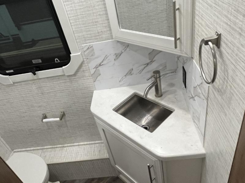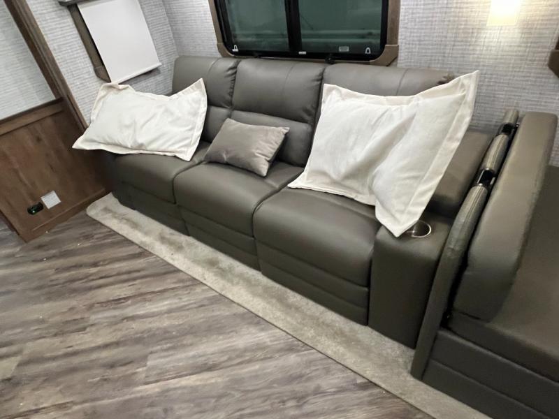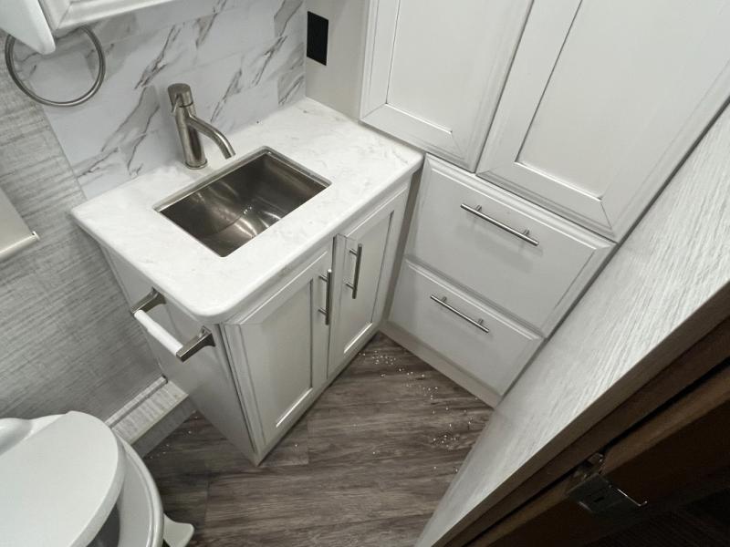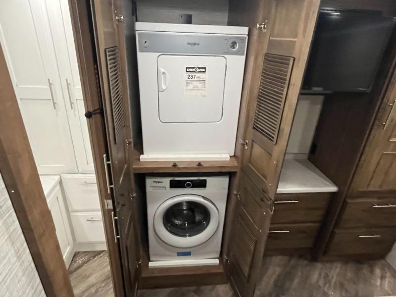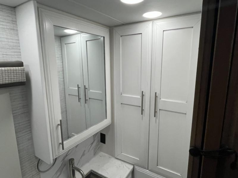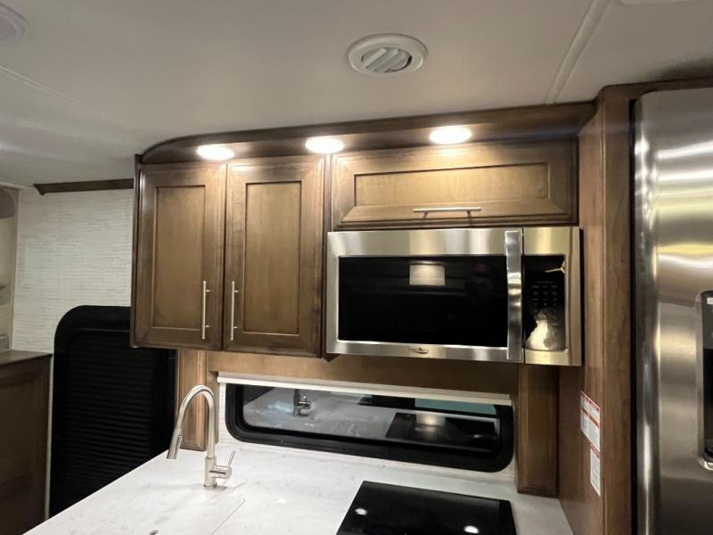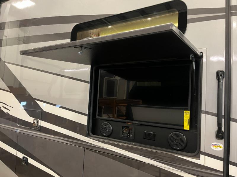 You will appreciate all of the conveniences throughout this motorhome starting with the carpeted, full pass-through storage compartment with lockable slam latch doors! The cockpit has a Sony infotainment center with Apple CarPlay and Android Auto to play your favorite tunes, and a panoramic window with a power shade so you can look out at your beautiful scenery driving down the road then enjoy privacy at night. Once you have reached your destination, you can either relax on the 93" reclining sofa or enjoy a meal at the booth dinette after preparing it with the two burner induction cooktop with LED display. You can also choose an optional free-standing dinette in place of the booth dinette. A private bedroom welcomes you to enjoy a good night's rest on the king bed after showering in the 30" x 36" shower in the full rear bathroom. The bathroom also has an area prepped to add an optional washer and dryer!