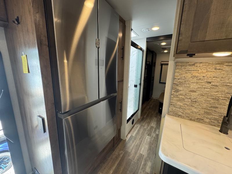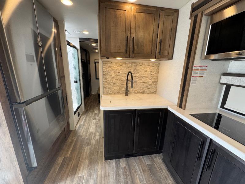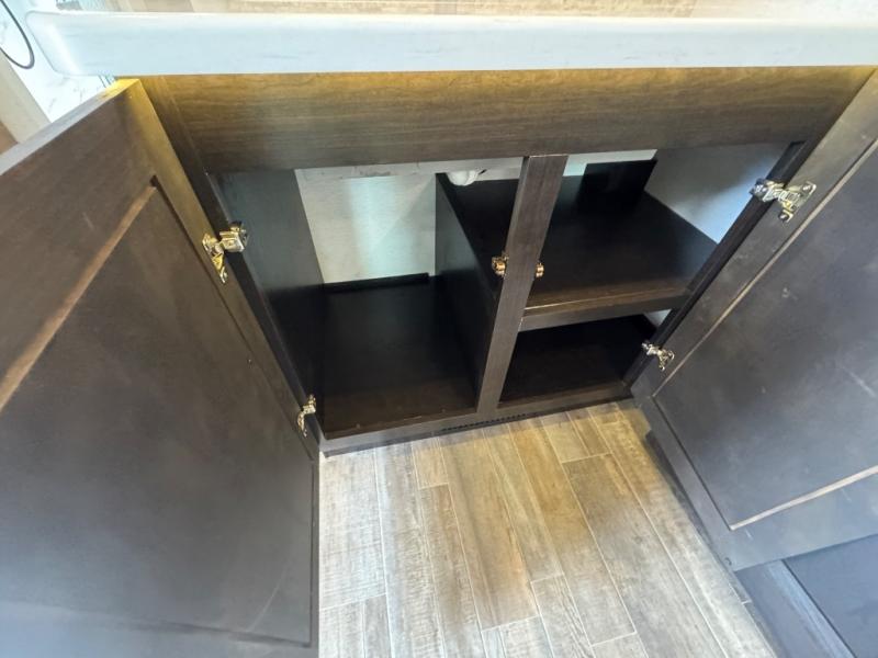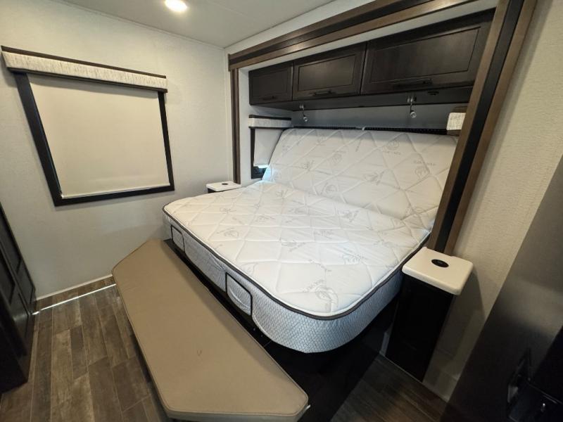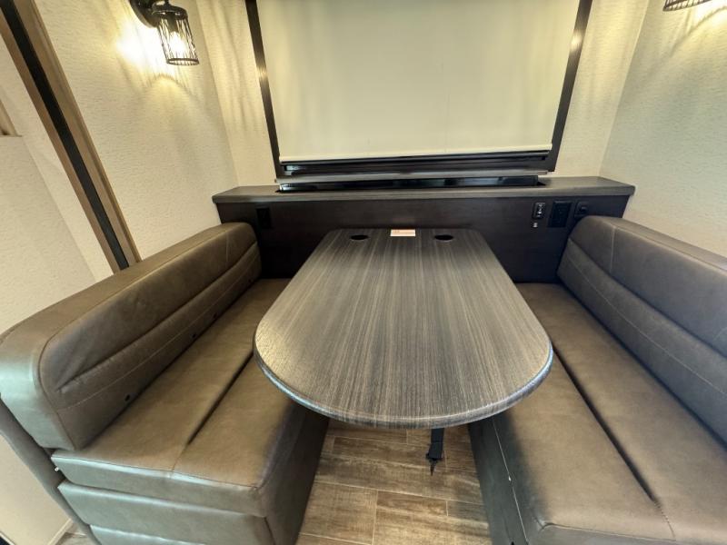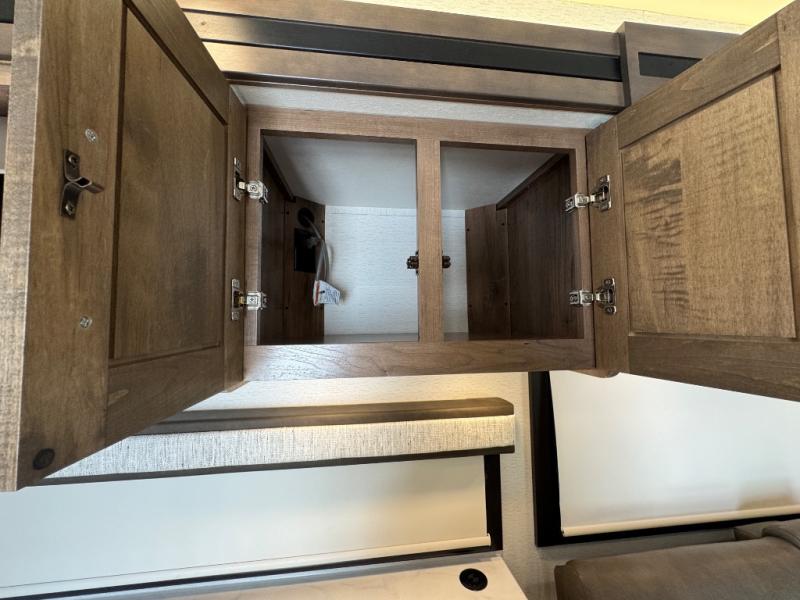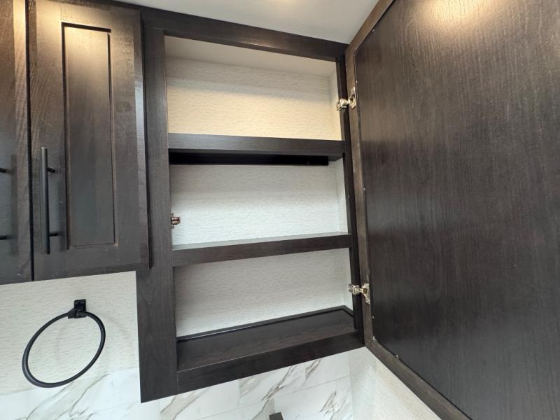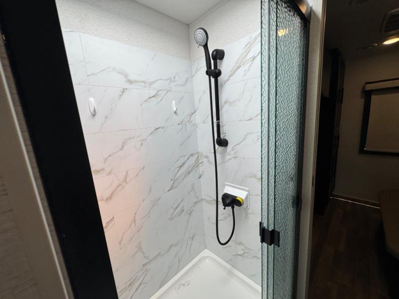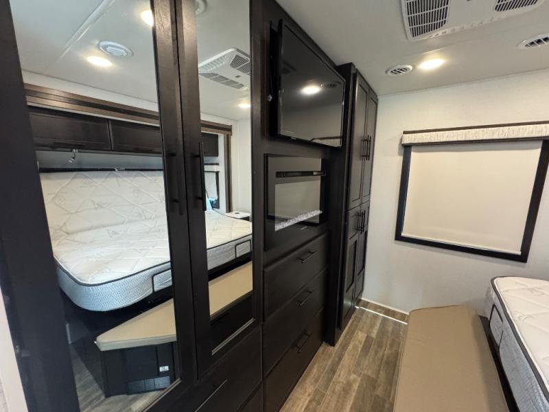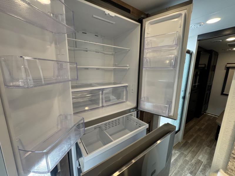 If you choose the 35L model of the Entegra Coach Accolade XT, you'll enjoy the larger chassis as it is built on the Ford F600. Experience the best of outside living with an outside entertainment center including a Smart TV and a Bluetooth receiver so you can stream all your favorite songs and shows. The 17' awning will keep you cool under the sun. Inside you will enjoy even more comforts like a full rear bedroom with its own TV and fireplace. The bedroom storage unit also includes a wardrobe and space for an optional washer/dryer combo. A split center bath means the shower is across the hall from the toilet and sink for extra convenience.