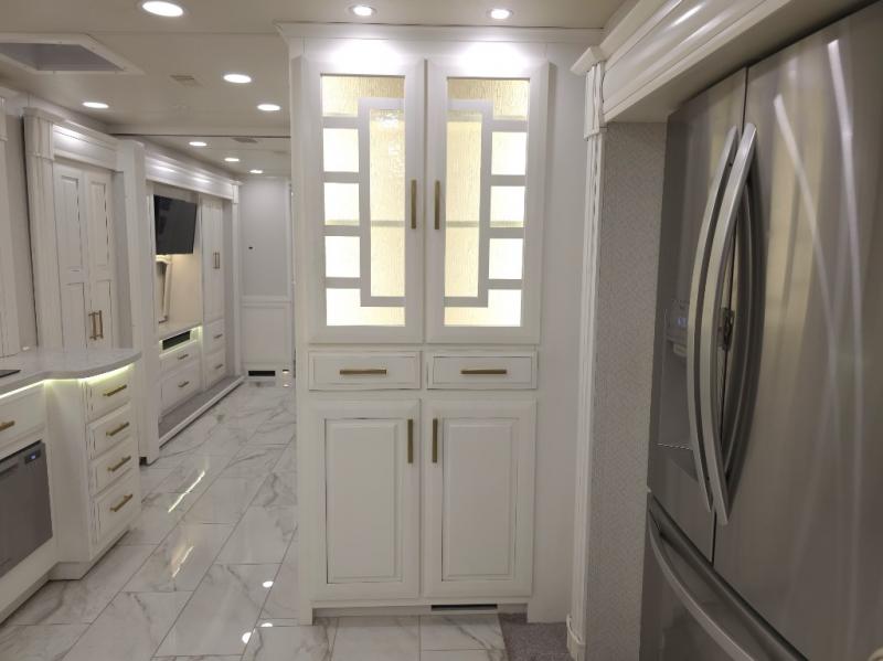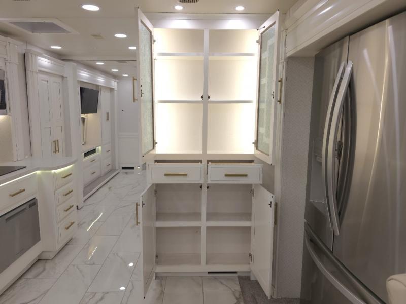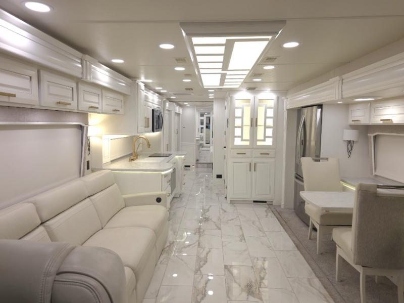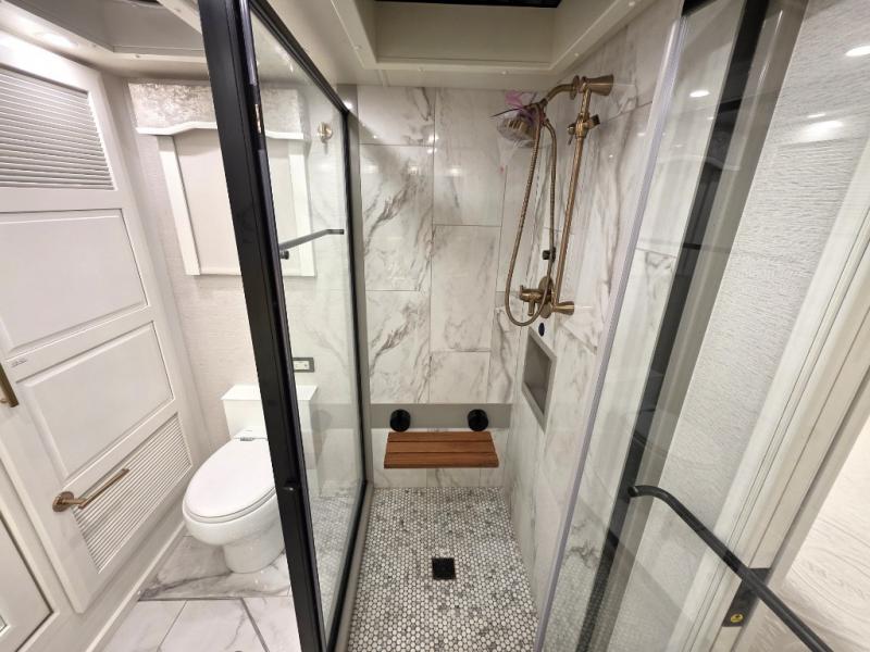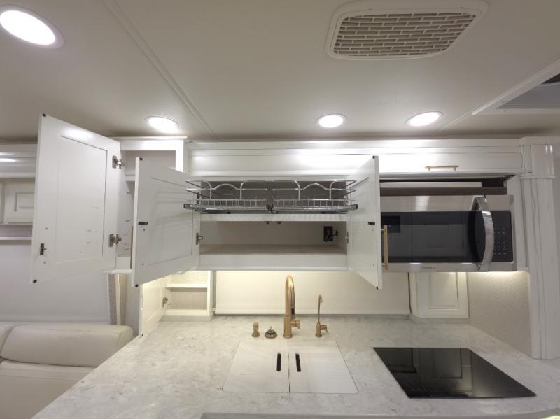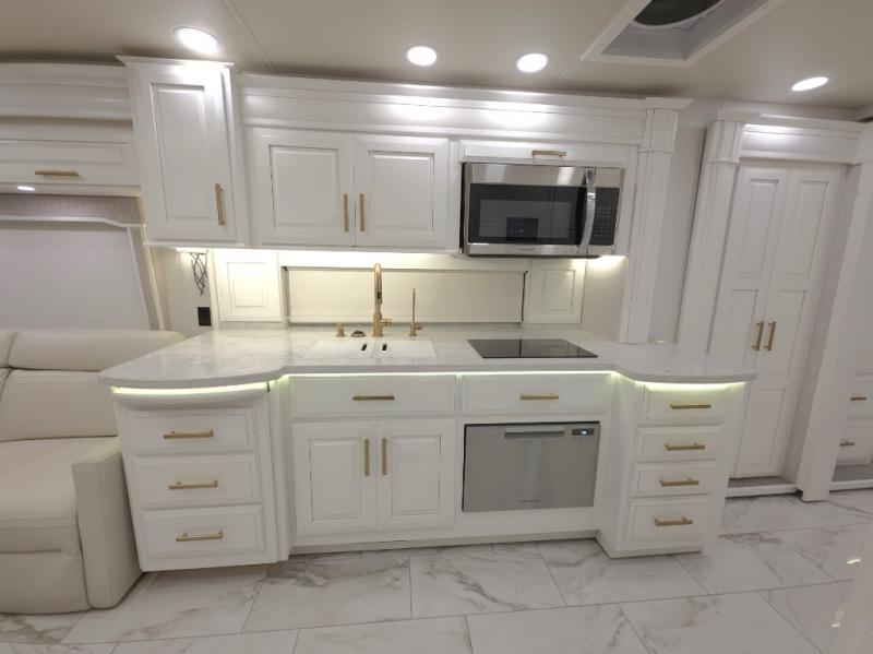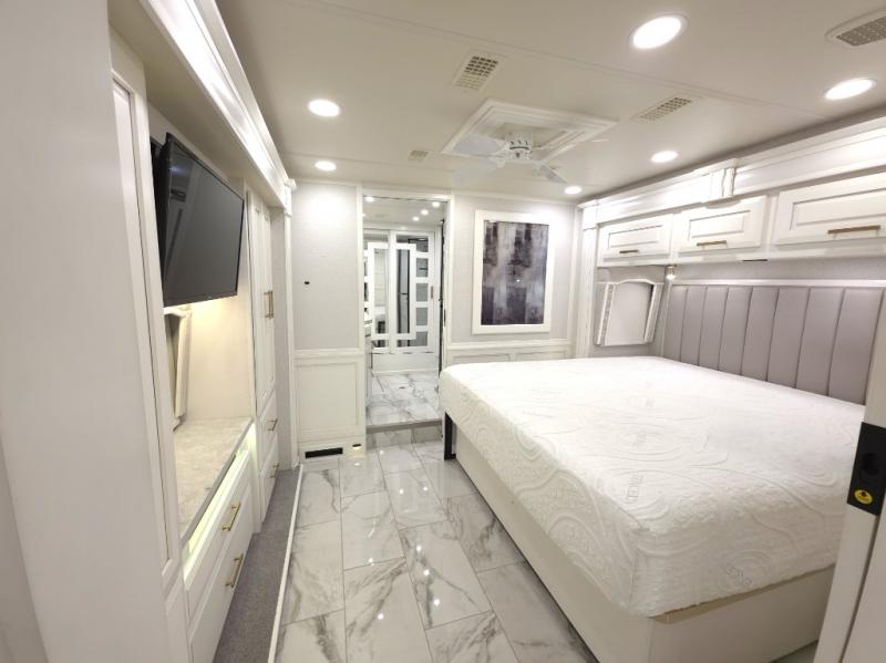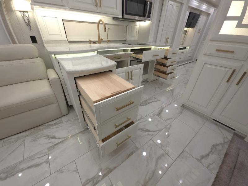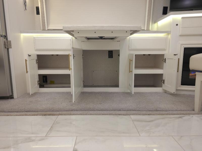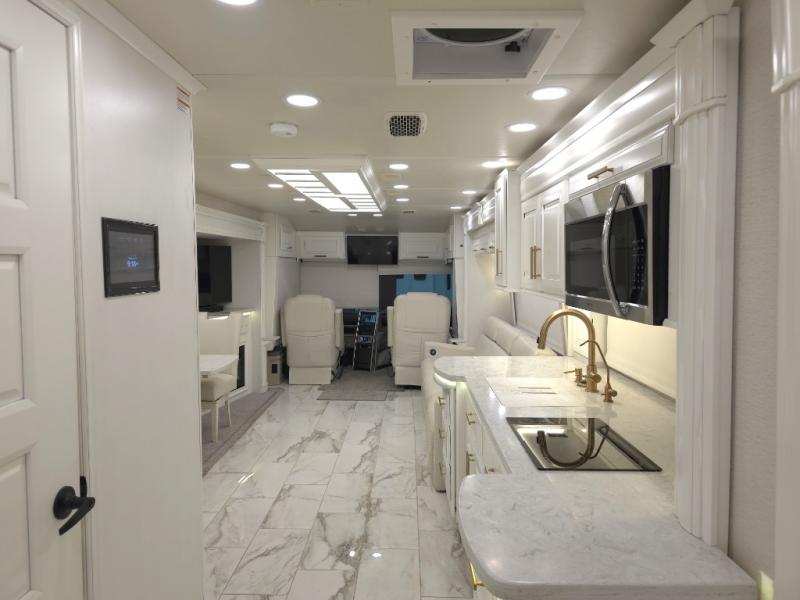 Built on a Spartan K3 chassis with a 605 HP Cummins engine, this coach offers strength, stability, adaptive cruise control, collision mitigation, and a six camera surround view system.