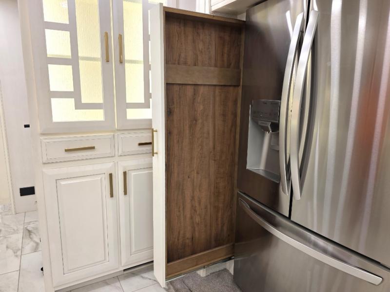 Cook like you never left home with an induction cooktop, convection microwave, residential refrigerator, and pantry. Spacious, stylish, and fully equipped.