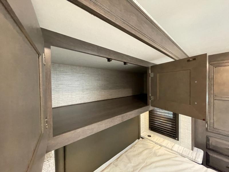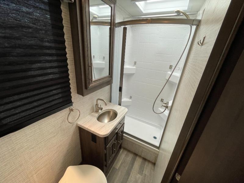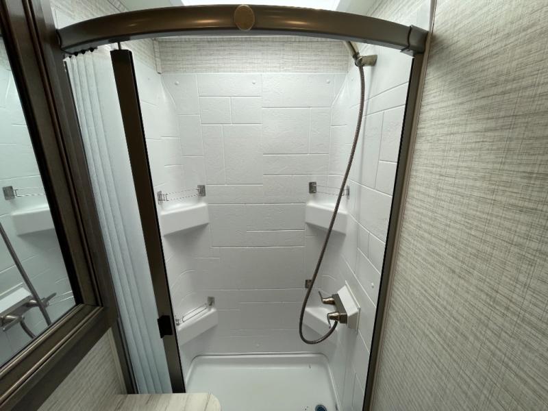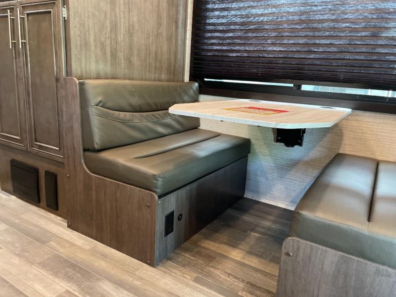Make your trips complete in this coach that can sleep four to five each night. There is a cab-over bunk with a 750 lb. capacity for guests and an RV queen bed slide out in the rear corner bedroom. The booth dinette can be used to dine at, play games, and even sleep an additional guest or two little ones. A two burner cooktop comes standard in the kitchen, along with a convection microwave, a stainless steel sink, and a 10 cu. ft. refrigerator. You will also appreciate having a full bath on board, and the 13' electric awning outside will provide a place to relax with a cold drink!