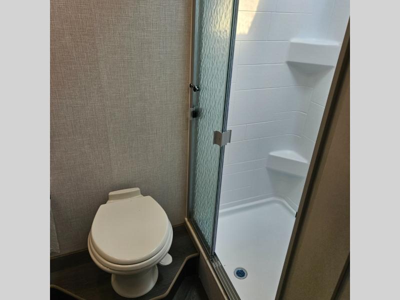 There is great convenience found in this Fortis Class A gas motorhome! But don't take our word for it; come check it out for yourself. You'll find that the private bedroom is one of your favorite spots with the Serenity Series RV king bed that sits on a slide out, the large wardrobe/dresser, and the LED TV across from the bed. Another great location is the kitchen because it has a pantry with swing and fixed shelves, a residential refrigerator, a convection microwave, and a three-burner cooktop. As you rest on the jackknife sofa or dream dinette, you'll enjoy entertainment from the LED TV, and you will also enjoy some added coziness from the fireplace.