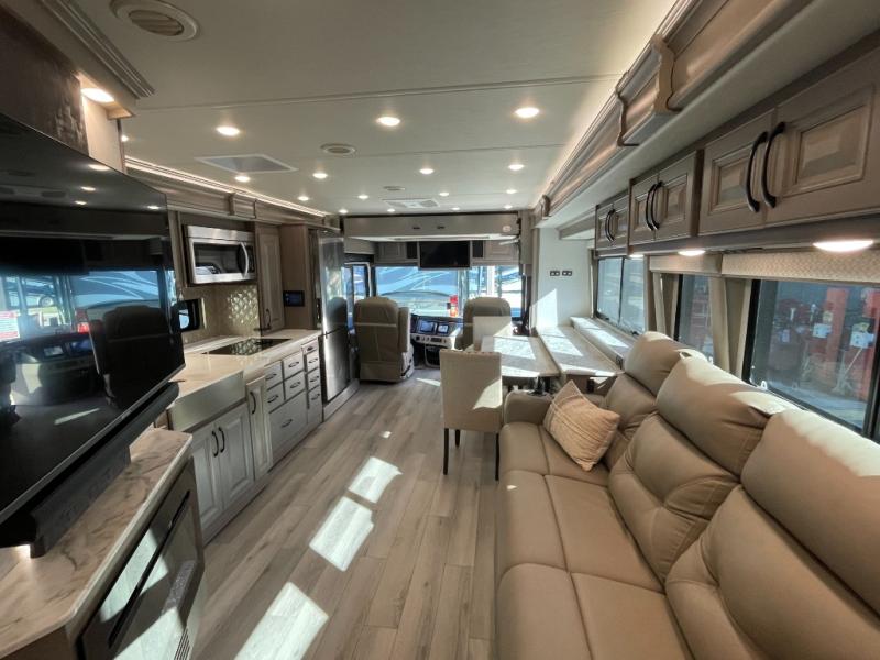 Natural light streams in through large panoramic windows, creating a welcoming environment for family gatherings or solo relaxation. The intuitive layout flows seamlessly from the living area to the kitchen and into the private bedroom space, giving you a comfortable, home-like feel that makes every trip more enjoyable.