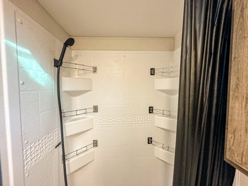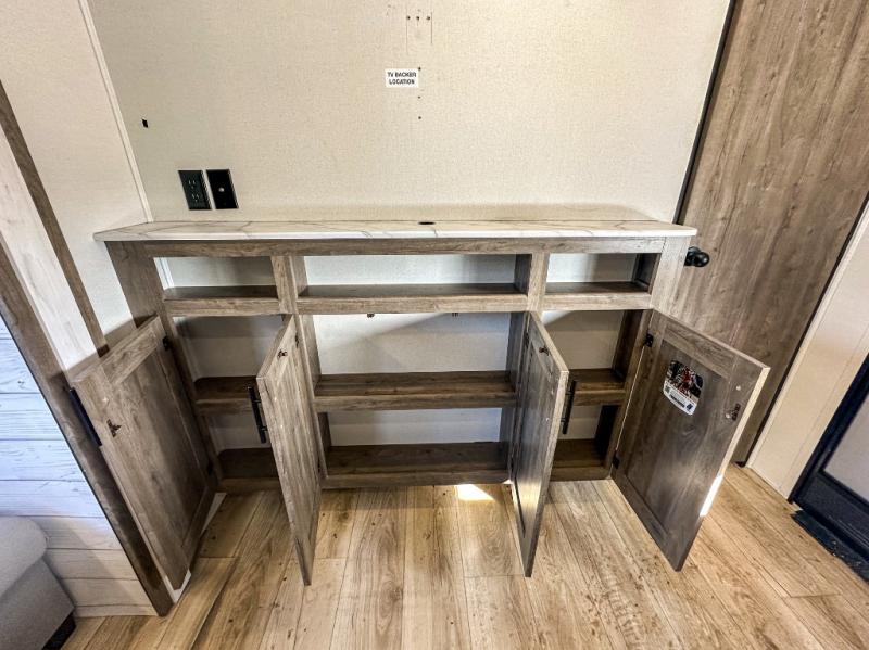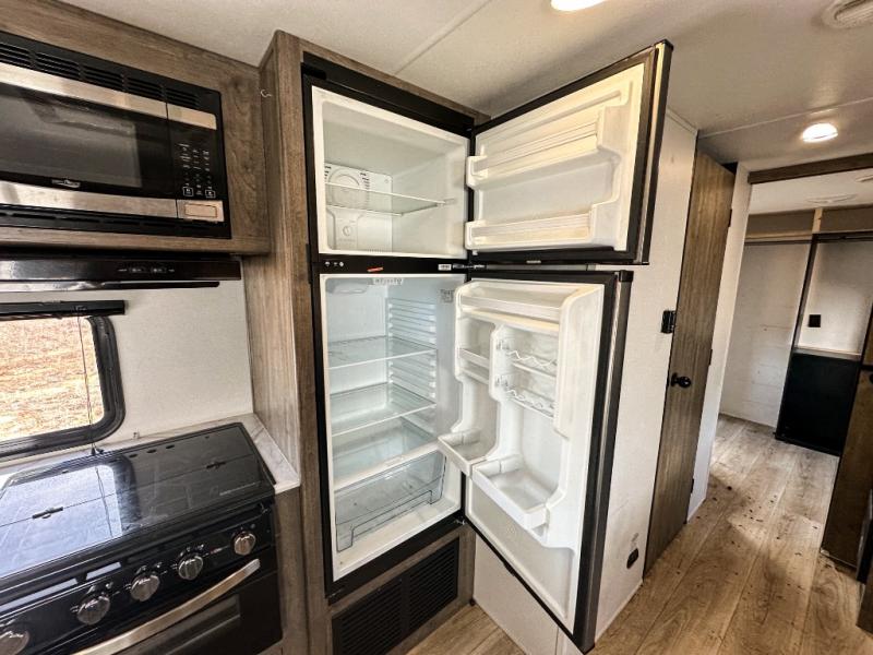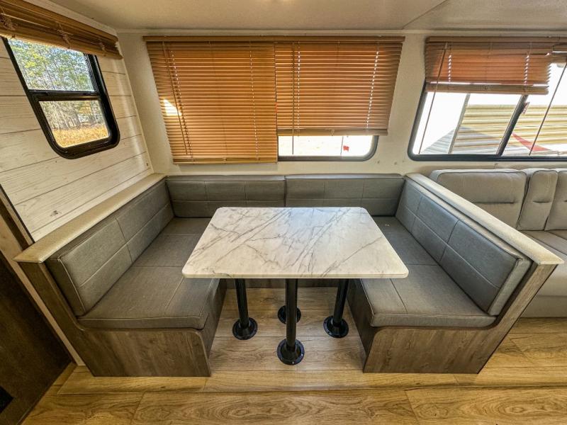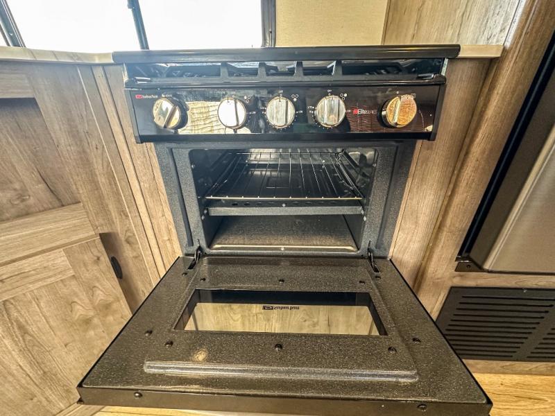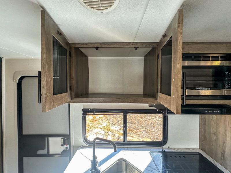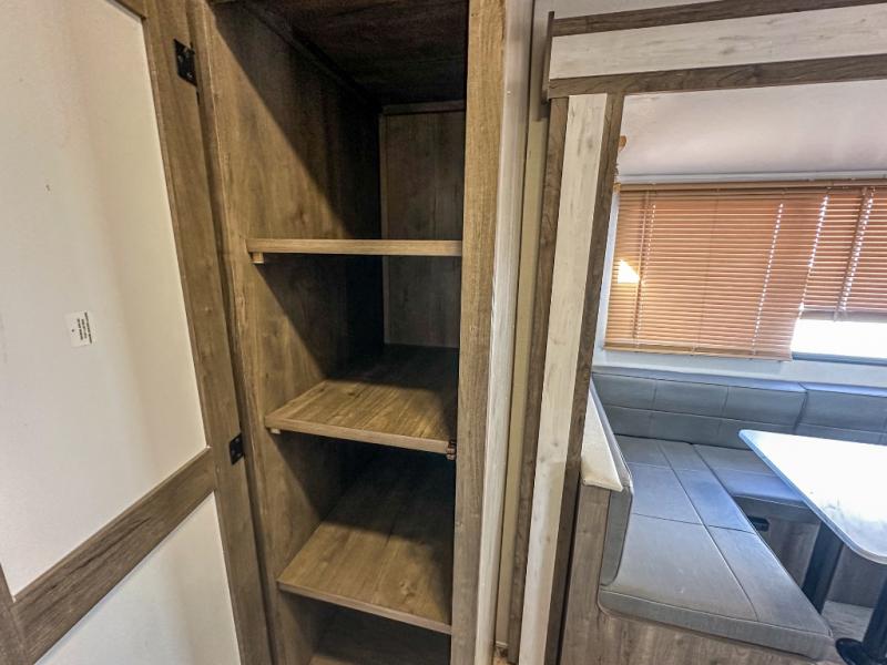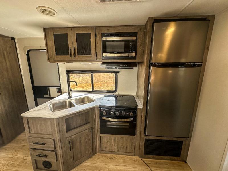 When you enjoy camping for the outdoor adventures and staying in your own trailer each night, get ready to enjoy this Pioneer with your group! The main living and kitchen area is spacious thanks to the U-shaped dinette and sofa slide out, and the galley kitchen offers a three-burner cooktop and microwave oven as well as a 12V refrigerator. The front bedroom allows you your own side of the bed and your own storage, while the rear bunkhouse has a single entry and includes triple bunks, plus a kiddie dinette that doubles as sleeping space. The 15' power awning offers shade over the entry door plus along the side of the trailer giving you some protection from the elements. Just grab your camping chairs from the pass-through storage and relax.