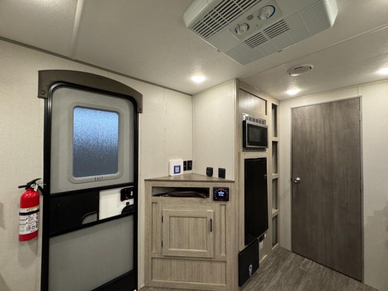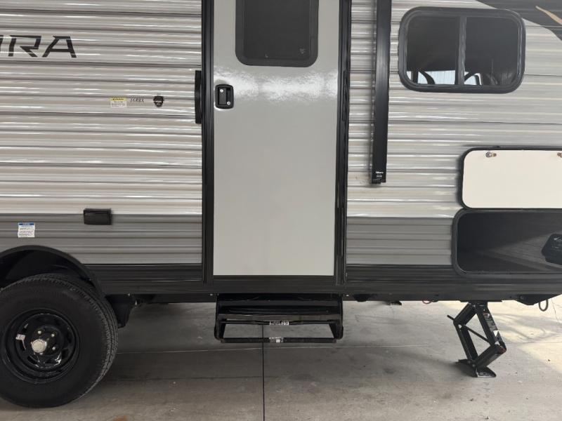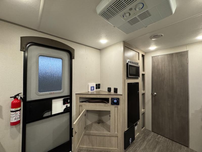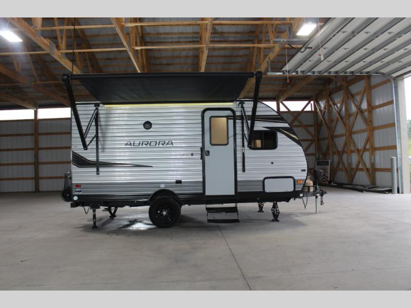 Comfortability, usability, and quality is what you will find in each one of these Forest River Aurora travel trailers or toy haulers! They are designed with a superior build and packed full with industry leading, functional, and distinctive standard features. SolidStep entrance steps and an XL swing arm grab handle help you to safely enter and exit the unit. The diamond plate rock guard will protect your unit from road debris and the nitrogen filled radial tires, which keep their pressure longer, offering better fuel economy. You will also find upgraded JBL Elite exterior speakers outside, a Carefree awning with multicolor lights and remote, plus flush mount baggage doors for easy packing. The interiors are beautifully designed with stainless steel appliances, and linoleum flooring throughout which will be easy to clean. Come find your favorite model today!