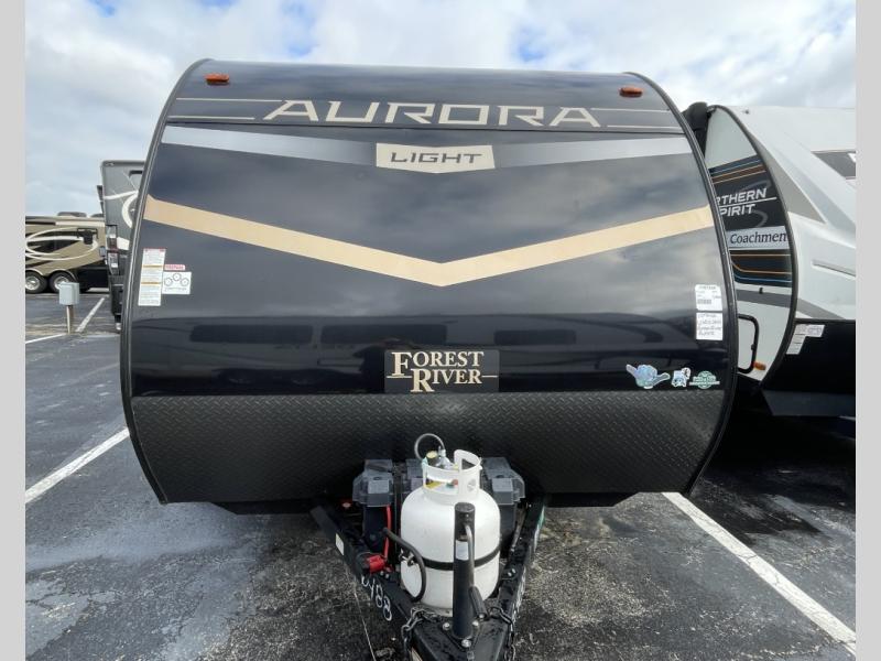 Comfortability, usability, and quality is what you will find in each one of these Forest River Aurora travel trailers or toy haulers! They are designed with a superior build and packed full with industry leading, functional, and distinctive standard features. SolidStep entrance steps and an XL swing arm grab handle help you to safely enter and exit the unit. The diamond plate rock guard will protect your unit from road debris and the nitrogen filled radial tires, which keep their pressure longer, offering better fuel economy. You will also find upgraded JBL Elite exterior speakers outside, a Carefree awning with multicolor lights and remote, plus flush mount baggage doors for easy packing. The interiors are beautifully designed with stainless steel appliances, and linoleum flooring throughout which will be easy to clean. Come find your favorite model today!