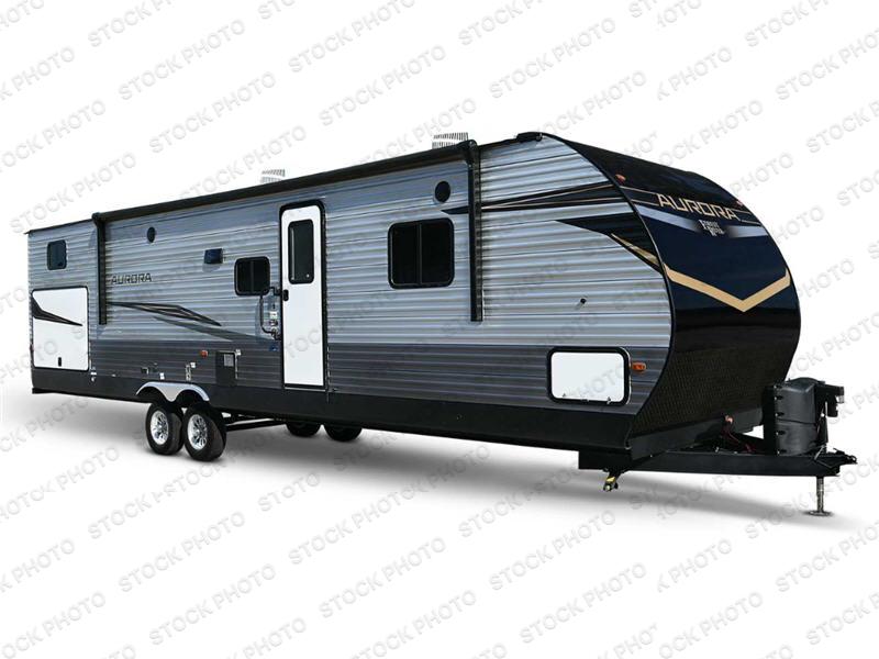 Comfortability, usability, and quality is what you will find in each one of these Forest River Aurora travel trailers, toy haulers or destination trailers! They are designed with a superior build and packed full with industry leading, functional, and distinctive standard features. SolidStep entrance steps and a Safe-T rail door assist on main entry door to help you safely enter and exit the unit. The diamond plate rock guard will protect your unit from road debris and the nitrogen filled radial tires, which keep their pressure longer, offer better fuel economy. You will also find upgraded JBL Elite exterior speakers outside, an electric awning with multicolor lights and remote, plus flush mount baggage doors for easy packing. The interiors are beautifully designed with a deep undermount farm style sink, stainless steel appliances, and linoleum flooring throughout which will be easy to clean. Come find your favorite model today!