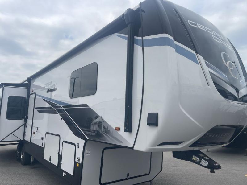 With any Cedar Creek fifth wheel by Forest River, you will find a quality-built RV with your comfort in mind! The all-aluminum super structure on 16" centers or less will provide a solid foundation to your fifth wheel, and the 3M bonded sidewalls will hold up over years of use. Each model also includes a Road Armor suspension for smooth towing, 5-Tier MorRyde Easy-Steps, a 200W Go Power solar panel, and motion sensor lighting in the exterior storage. Inside, the decorative fireplace with a natural wood mantel will have you feeling right at home and the V-Flow cordless vacuum will let you easily clean up after a weekend at the lake. Additional features include extra storage for linens and a skylight in the bath, reading lights above the bed and bedside motion sensor lighting, plus vinyl floor covering and solid surface countertops!