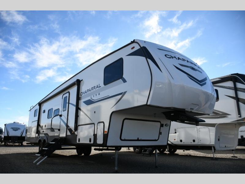 Travel in style and comfort with the 2024 Coachmen Chaparral Lite 368TBH, a family-friendly fifth wheel designed to deliver big comfort without the heavy weight. With two full bathrooms, a private bunkhouse, and a front private bedroom, this model is the perfect blend of space, luxury, and practicality — all in a towable, lightweight design.
