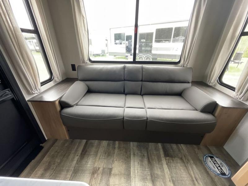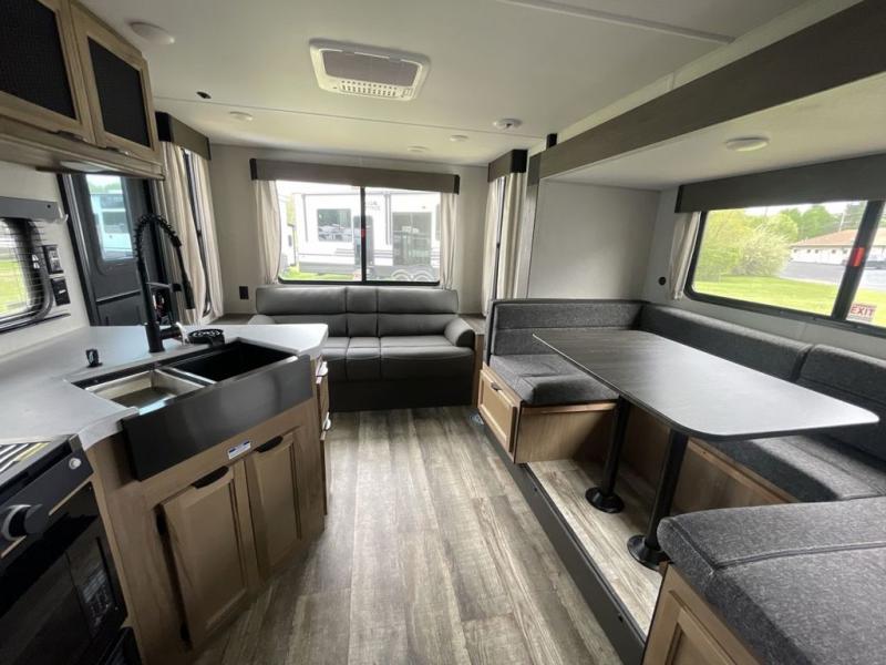 This Cherokee Grey Wolf travel trailer is perfect for your small family and will leave you planning your next outing before you are back from your current weekend away! You will find all of the comforts you need with plenty of livable space including a U-shaped dinette slide. There is also a sofa for more seating when company arrives, and there are end tables on either side to prevent spills. A spacious walk-through bath leads to a front private bedroom where you will enjoy a great night's rest on a comfortable queen-size bed. You will find ample storage for clothing in the wardrobes that are above handy nightstands for your personal things. There are even lights mounted above the bed on each side which makes it easy to read a couple of chapters before drifting off to sleep.