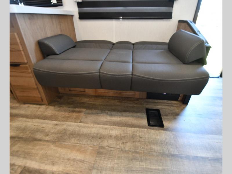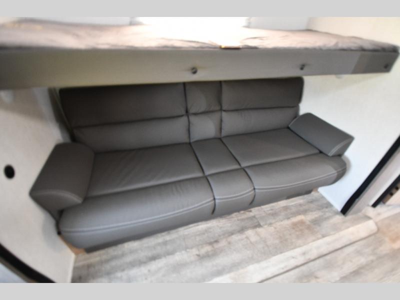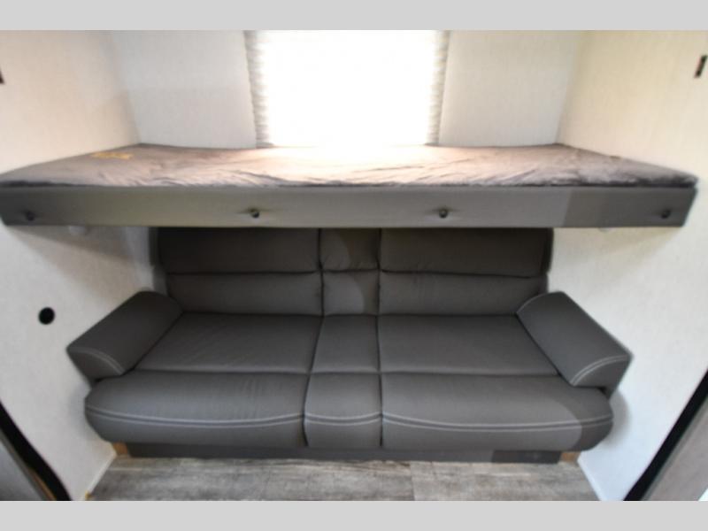 Rear private bunkhouse with bunk and flip-up bunk above sofa