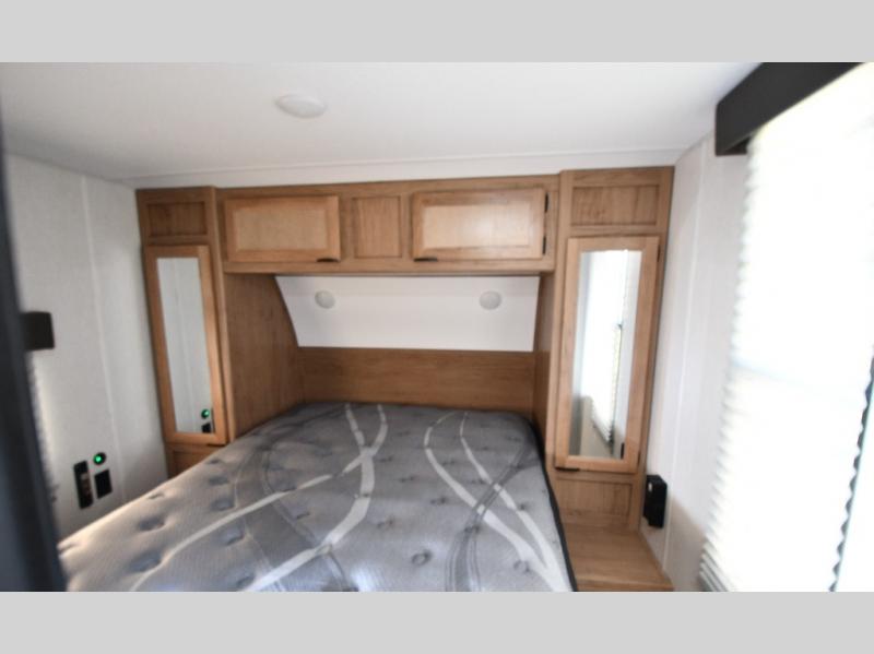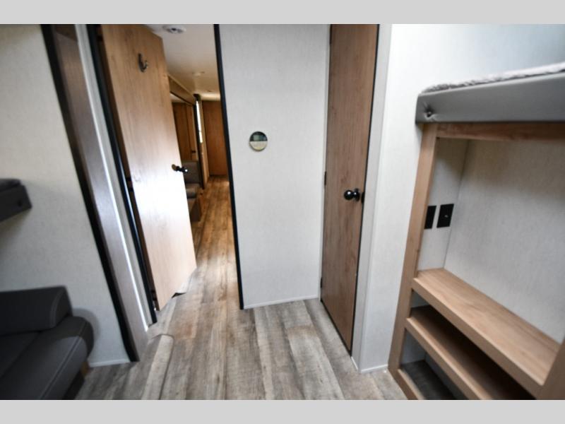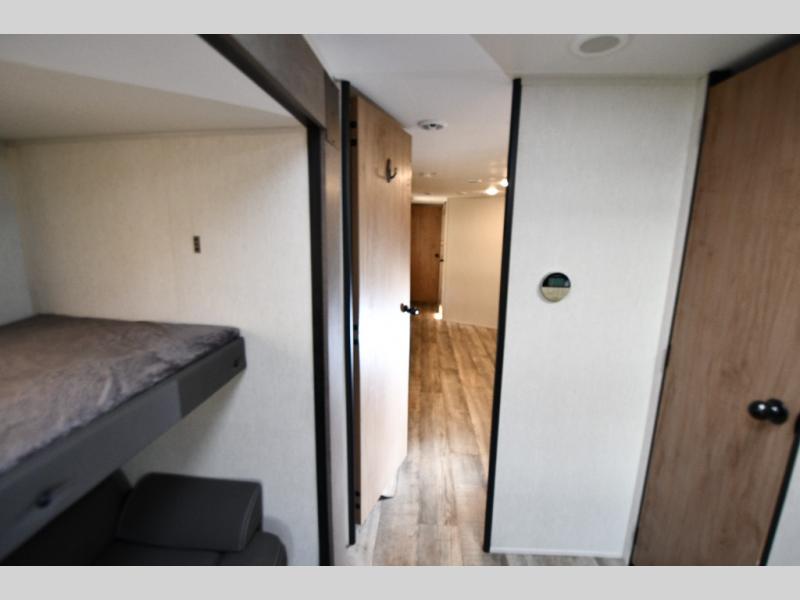 Step inside the pre-owned 2024 Forest River Cherokee 294KM and experience a travel trailer built for family fun and comfort. The rear private bunkhouse features a bunk, a flip-up bunk above a sofa slide, and a linen closet—perfect for kids or guests. The front private bedroom offers a queen bed with wardrobes on either side, a TV mount area, and direct access to the dual-entry bathroom. The full bathroom also has an exterior door for quick access to the outdoors. Prepare meals easily with the fully equipped kitchen, and take the fun outside with the outside kitchen that includes a 5.6 cu. ft. refrigerator, sink, and pull-out stove top. An exterior TV mount lets you enjoy entertainment under the stars.