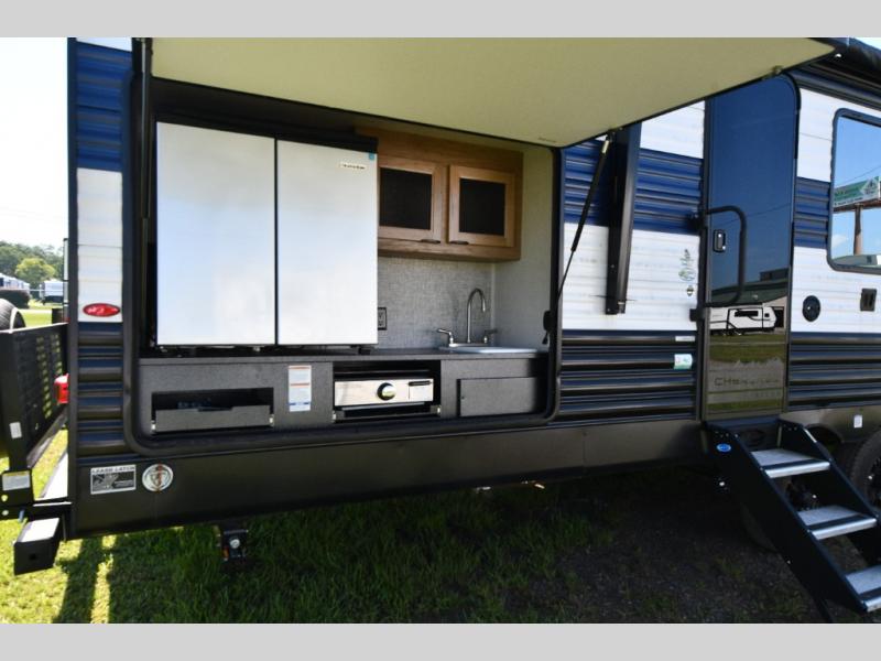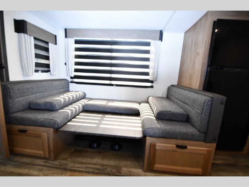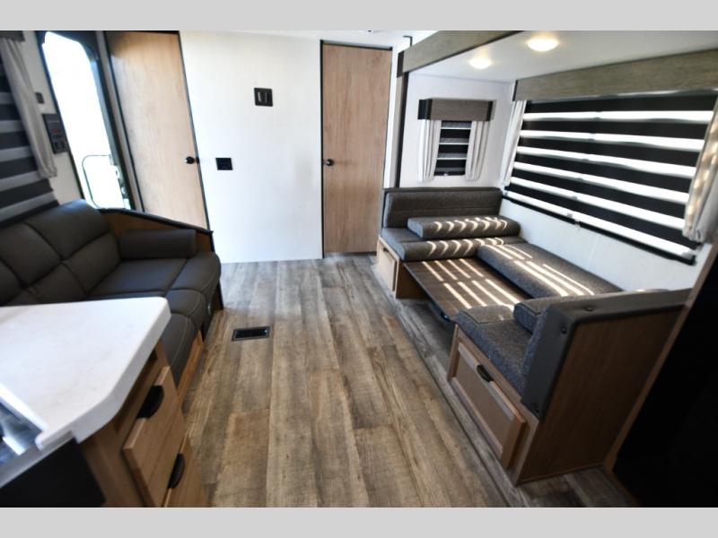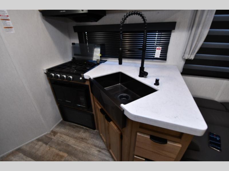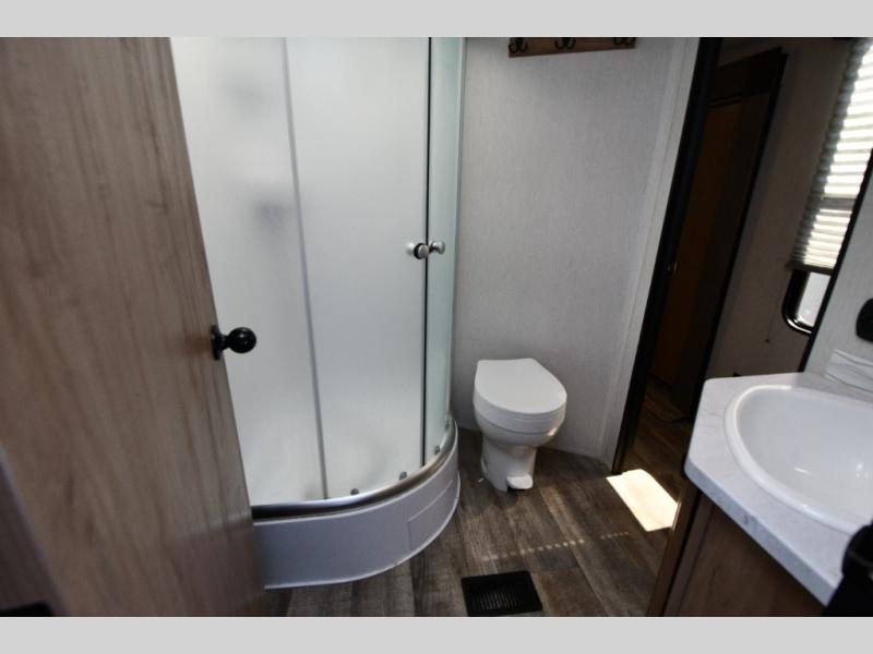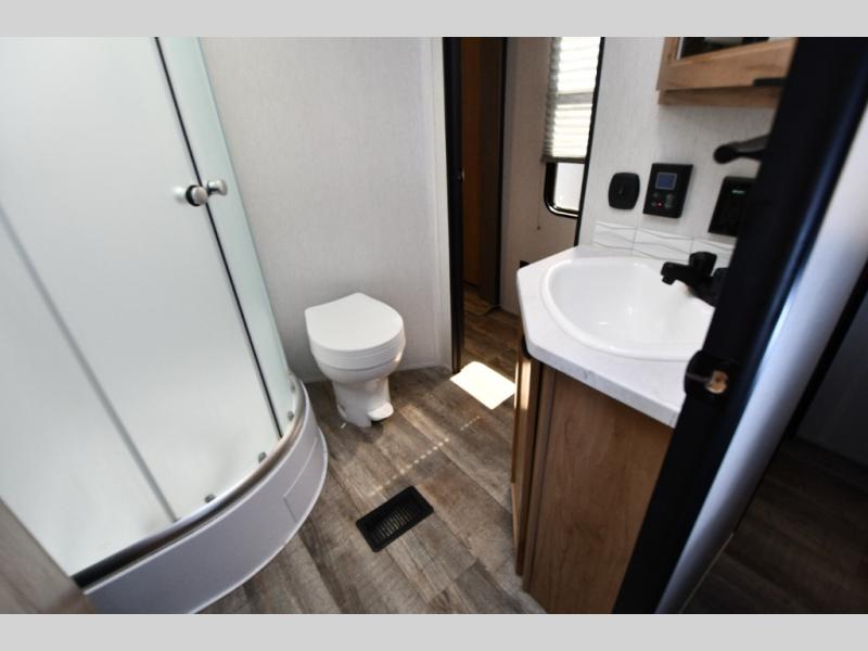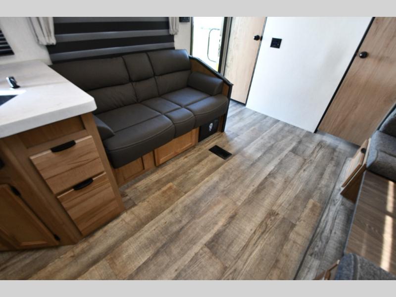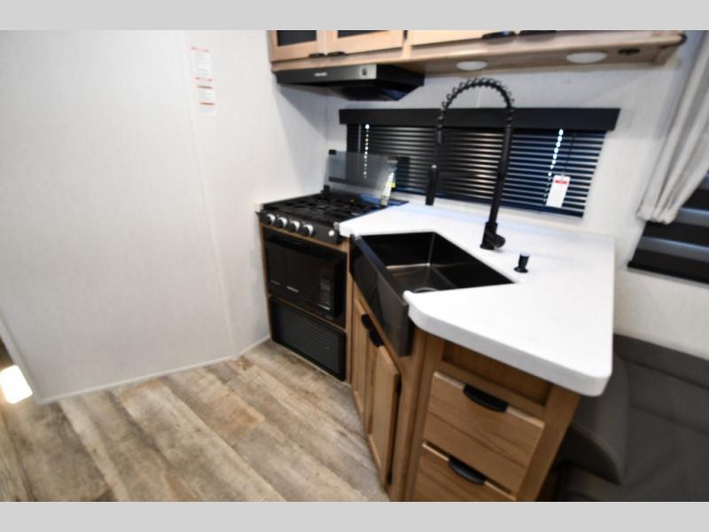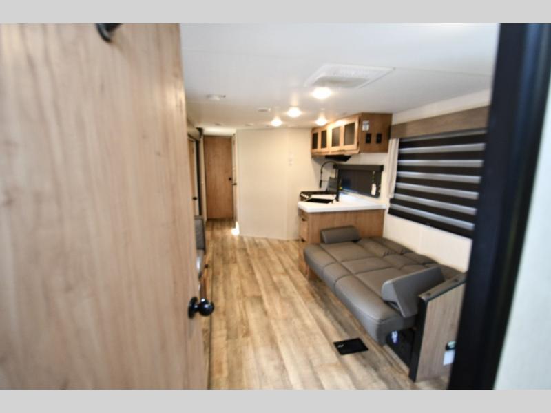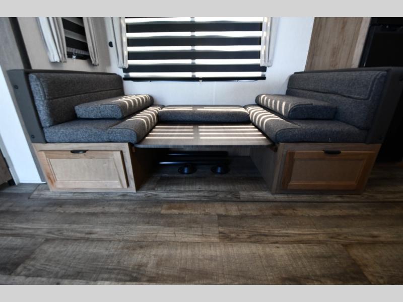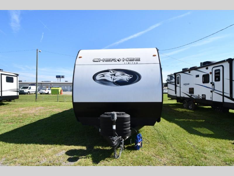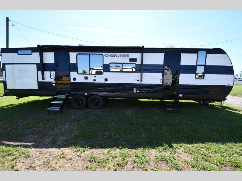Inside and out, this Cherokee travel trailer is designed for adventure. The seamless roofing membrane with heat reflectivity keeps you comfortable, while the armored underbelly tank enclosure protects your unit from road debris. Dual entry doors, an outside shower with hot and cold water, and the Campfire package with an air fryer, tankless water heater, and extra bedroom storage enhance convenience. USB charging stations, light-filtering blackout zebra shades, and premium finishes make this trailer feel like home wherever the road takes you.