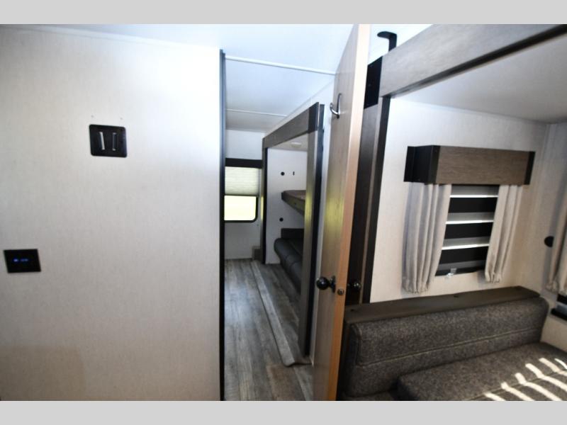 Explore the outdoors in the pre-owned 2024 Forest River Cherokee 294KM with a private front bedroom and rear bunkhouse for family comfort.