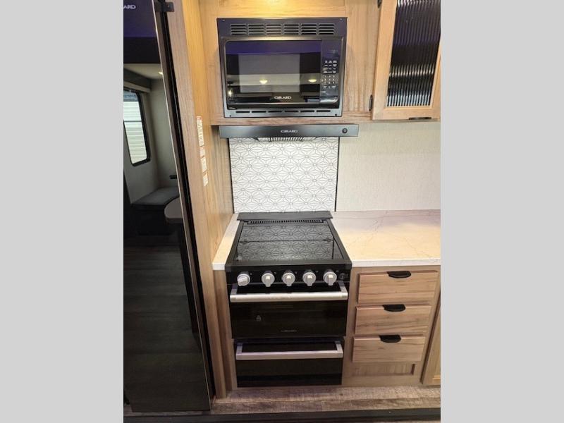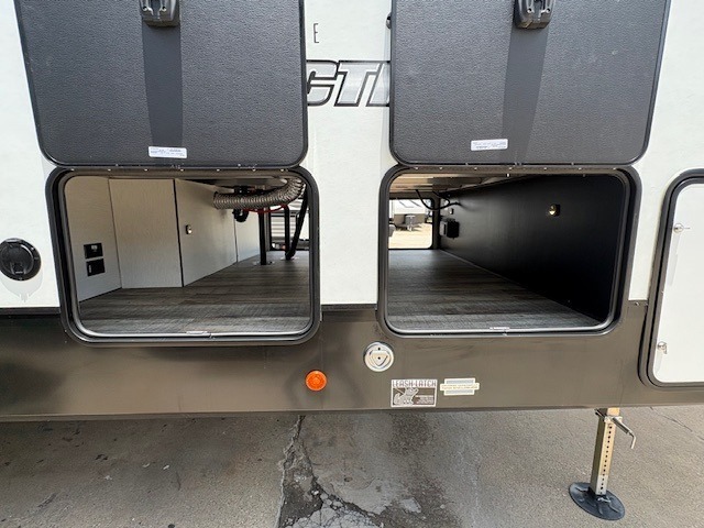 You will have amazing residential comfort in the Forest River Cherokee Arctic Wolf Suite fifth wheels! These units have a “SuperStor” dual-cavern basement storage compartment to allow you to bring more gear, and they have been constructed with a “ToughBend” rigid skirt metal design, a 1x engineered wood “SuperTruss” roof structure with 3/8" decking, and a 5/8” tongue-and-groove plywood floor decking. Each model includes Leash Latch pet safety technology, an outside shower with hot/cold water, preparations for an exterior TV, motion-sensing lighting, and a smart monitor panel with smart phone Bluetooth connectivity. The supersized central air conditioning unit (15,000 BTU) with quick cool and second oversized 15,000 BTU ducted air conditioner will cool your unit down in a snap when you camp in the hot summer months.