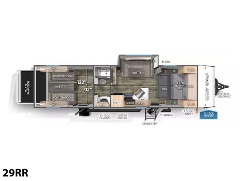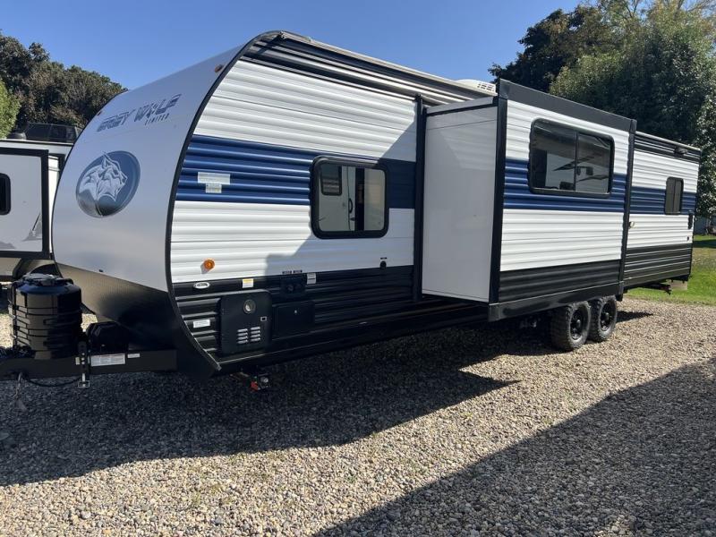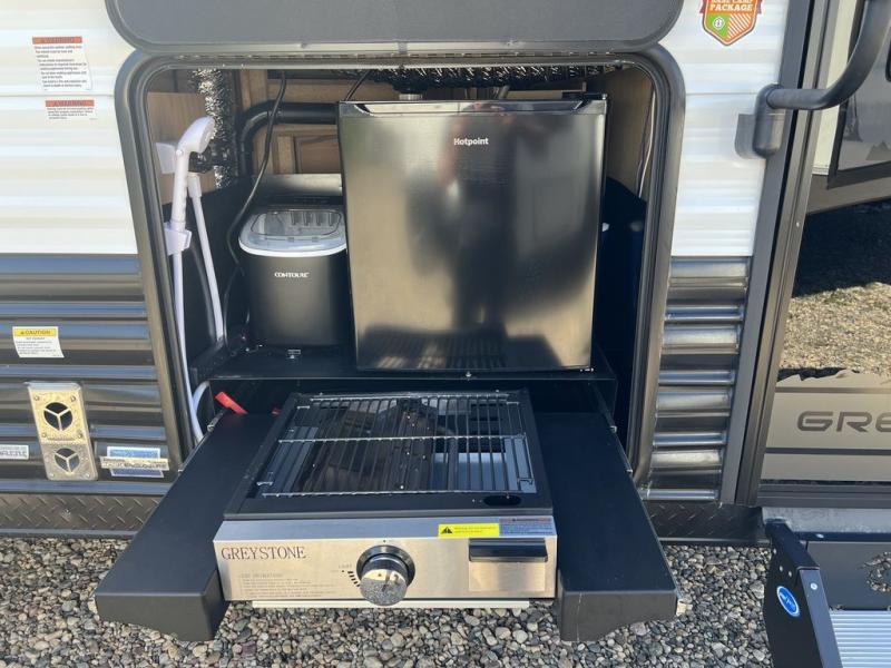 Whether it's a journey that will take you to new locations or a tried-and-true getaway to that favorite and memorable destination, the Forest River Cherokee Grey Wolf travel trailers and toy haulers are going to make the trip worth it every single time! You can travel in confidence with the premium wheel package, seamless roofing membrane with heat reflectivity, Power Gear frame technology with space-saver rail design, and Cherokee back-up camera system. The Cherokee Grey Wolf's interior is highly attractive with its stainless steel kitchen suite package and premium bedding ensemble and comforter. You will also find a black waste tank flush-out kit, an outside shower with hot and cold water, an armored underbelly tank enclosure, and an RV grill quick connect.