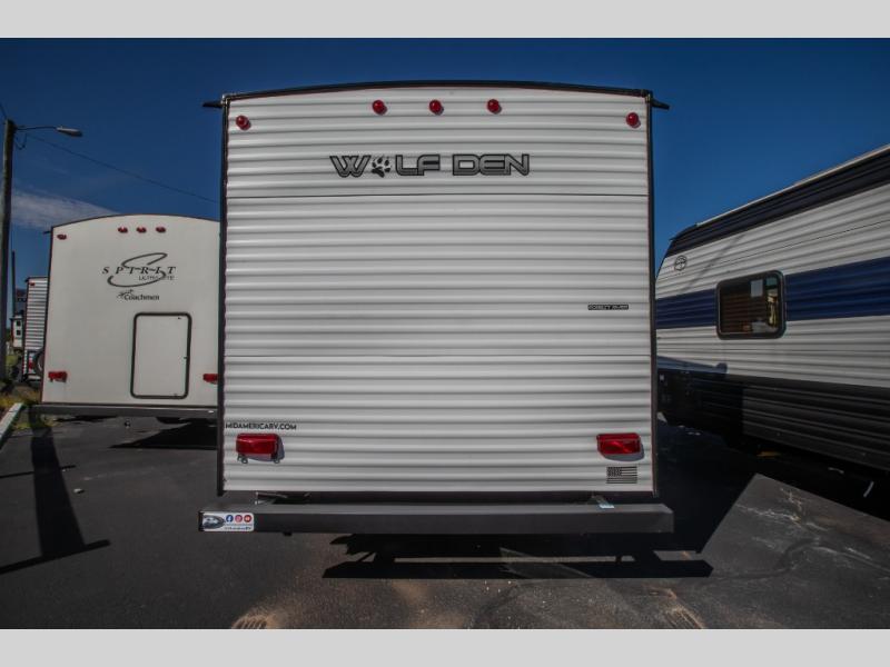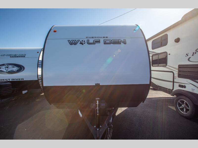 The Cherokee Wolf Den travel trailers by Forest River are lightweight for easy towing, while still including the camping essentials you're looking for! There are a variety of floorplans to choose from, including bunkhouse models, couple's units, and even all-electric floorplans! You'll find a tub/shower in each travel trailer, a comfortable queen bed, seating spaces to relax on, and kitchen amenities that will make your space feel more like home. There are storage spaces inside for your belongings plus outdoor storage for fishing gear, camp chairs, tools, and more! Start a new adventure today in a Cherokee Wolf Den travel trailer today!
