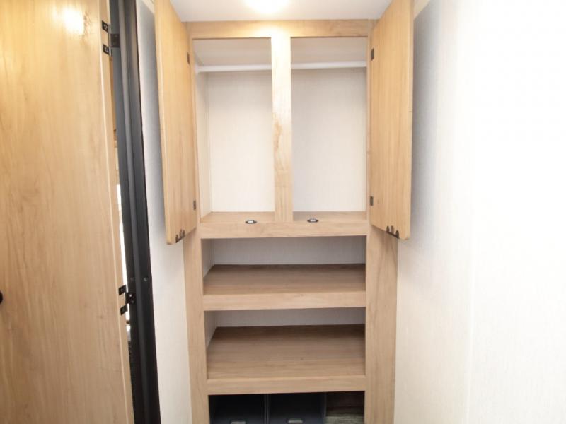 Compact, lightweight, and all-electric, the Cherokee Wolf Den 17EV makes weekend getaways simple and fun. Perfect for couples or small families, this travel trailer combines essential features with thoughtful storage solutions to maximize comfort on the road.