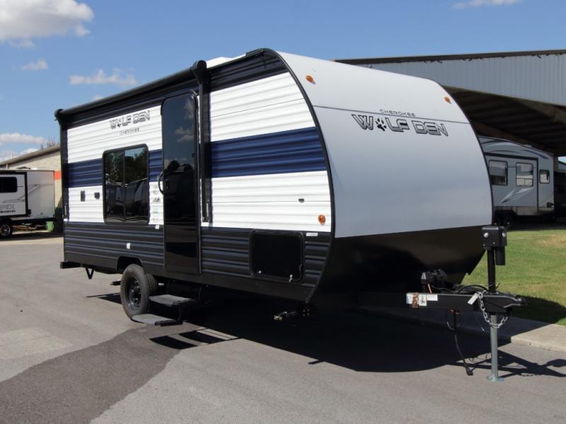 The Cherokee Wolf Den series from Forest River is designed to deliver comfort and convenience at an affordable price. Every model includes a queen bed, a tub/shower, and practical kitchen amenities that make your campsite feel like home. Lightweight construction ensures easier towing, while interior and exterior storage keeps your essentials organized.