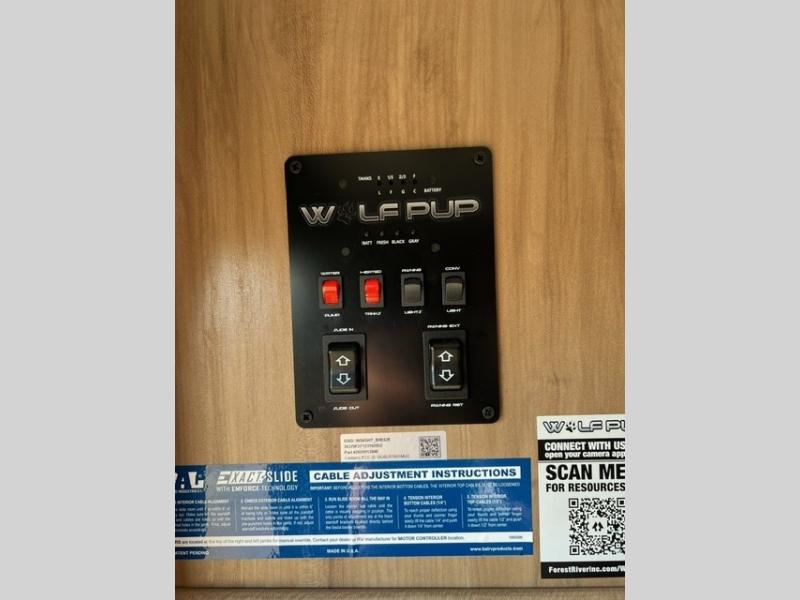 Each one of these Forest River Cherokee Wolf Pup Black Label travel trailers and toy haulers are lightweight and easy to tow! They are fully self contained with ample tank capacities, an abundance of storage space, and filled with at home amenities. Some features included with the Black Label Package that will set these models apart are the LG solid surface countertops, aluminum rims, designer fabrics, and upgraded bedspreads; see dealer for more details. The aerodynamic smooth radius front profile, Power Gear frame technology, and space saver rail design make them easier to maneuver. You will also appreciate the seamless roofing membrane with heat reflectivity to keep the sun from making your unit a hot box. The tongue and groove plywood flooring will hold up for years of fun and the USB charging stations help to keep your electronics at 100% while you're away. Come find the best model for you today!