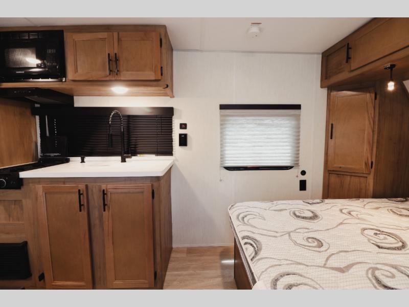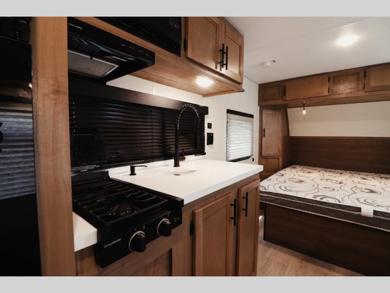 Lightweight, solar-ready, off-road capable! Sleeps 3, queen bed, full bath, outdoor kitchen, Wi-Fi prep, and modern Black Label upgrades — perfect for couples and first-time RVers!