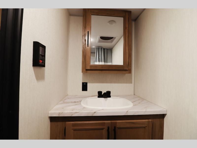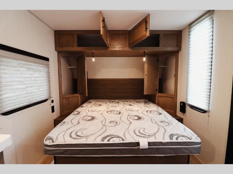 Compact yet Capacitive — Measuring just 21'10 long, 10'6 tall, and 7'6 wide, the 16FQWBL packs full-living features without overwhelming your tow capabilities.