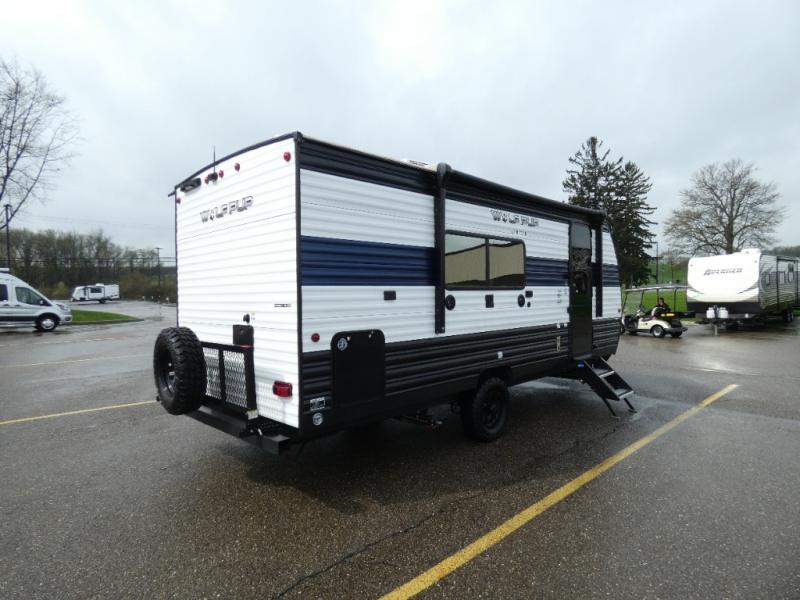 Each one of these Forest River Cherokee Wolf Pup Black Label travel trailers and toy haulers are lightweight and easy to tow! They are fully self contained with ample tank capacities, an abundance of storage space, and filled with at home amenities. The aerodynamic smooth radius front profile, Power Gear frame technology, and space saver rail design make them easier to maneuver. You will also appreciate the seamless roofing membrane with heat reflectivity to keep the sun from making your unit a hot box. The tongue and groove plywood flooring will hold up for years of fun and the USB charging stations help to keep your electronics at 100% while you're away. Come find the best model for you today!