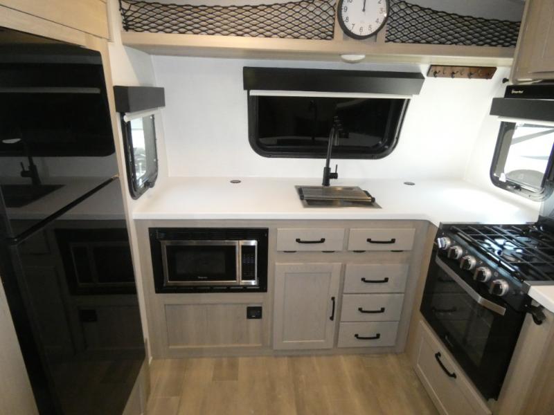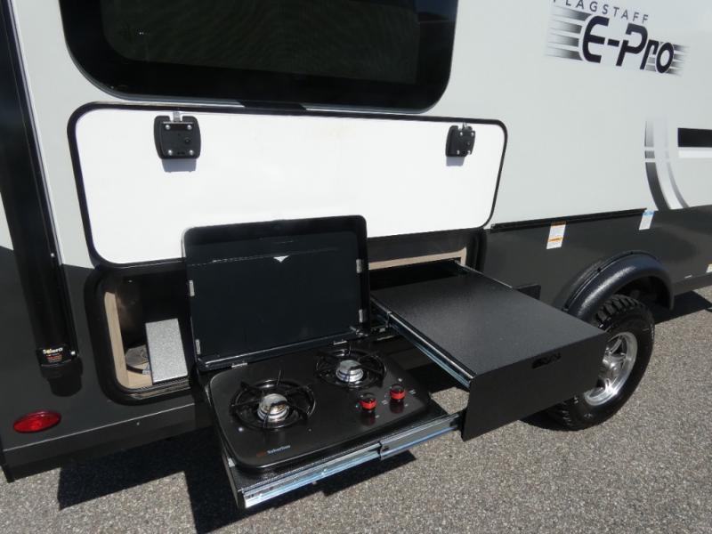With any Flagstaff E-Pro travel trailer by Forest River, you will experience lightweight towing, style and features that will meet your needs, plus amenities that give you more than you expected! Built with interior and exterior composite sidewall construction, tongue and grove plywood flooring, and a vacuum laminated roof and walls, plus torsion axle, Rubber-Ryde suspension, and a tire pressure monitoring system for safety while traveling. And the 200 watt roof mount solar panel with 1,800-watt inverter will allow you to stay off-grid if you like. The interior offers a comfortable environment with the choice to use the air conditioner or furnace, and a 12V entertainment TV with stereo to stay up to date on your favorite movies. Make your selection today!