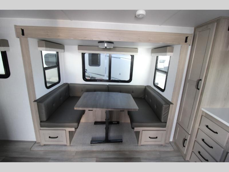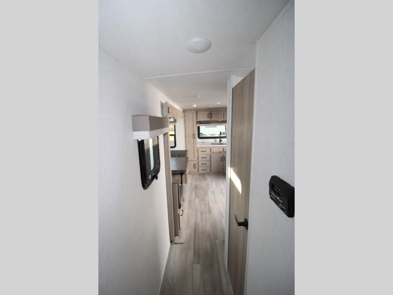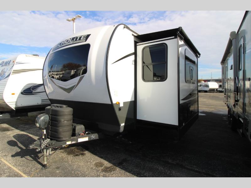 With any Flagstaff Micro Lite travel trailer by Forest River you will enjoy lightweight towing, durable construction, and added interior comforts to make each trip memorable! Each model features a torsion axle, Rubber-Ryde suspension, nitrogen filled, Goodyear Endurance tires, and easy lube axles with Nev-R-Adjust brakes for smooth towing from home to campground. The 6-sided aluminum framed construction provides a strong foundation so you can enjoy your RV for years to come, plus electronically controlled heated holding tanks and an enclosed underbelly will let you camp all year long. Head inside to find hybrid woven flooring in the slide outs, Sedona wood cabinetry, solid surface kitchen countertops, and many more amenities. These travel trailers also include exterior conveniences for hassle-free camping, like the power tongue jack, magnetic compartment door catches, Keyed Alike locks, and rear ladder to name a few!