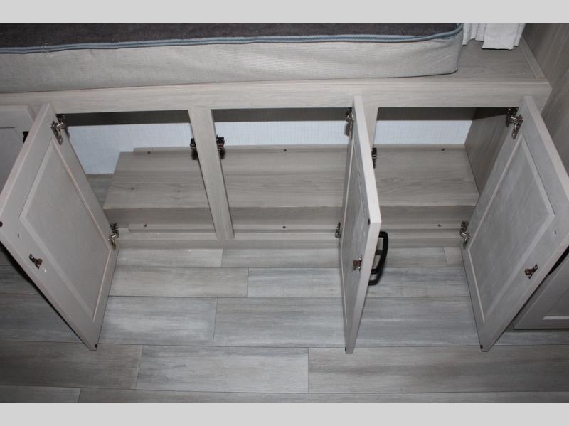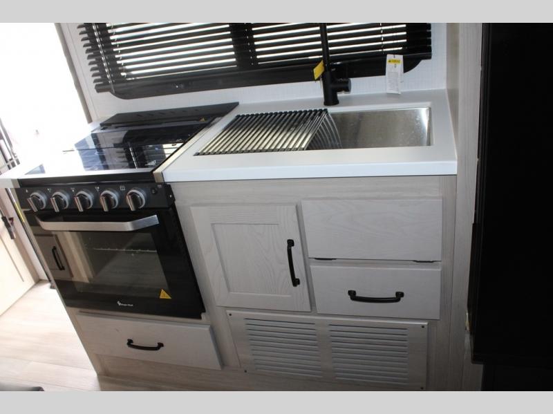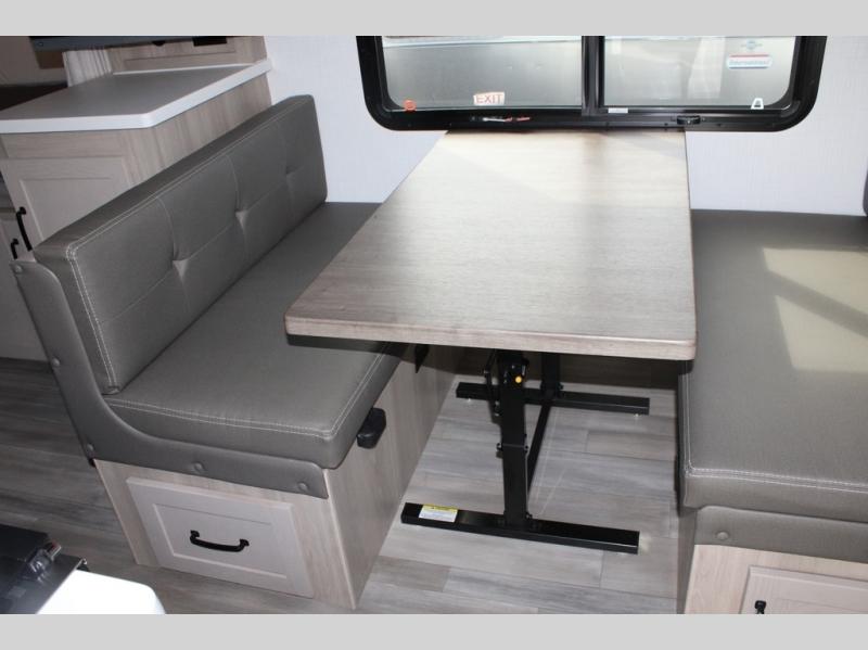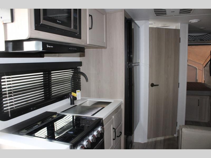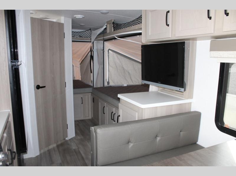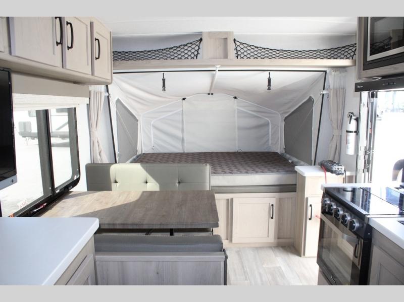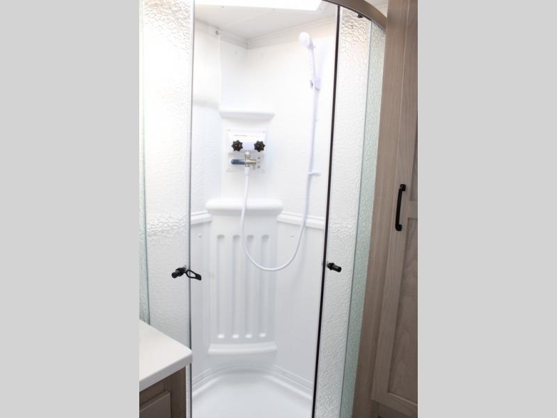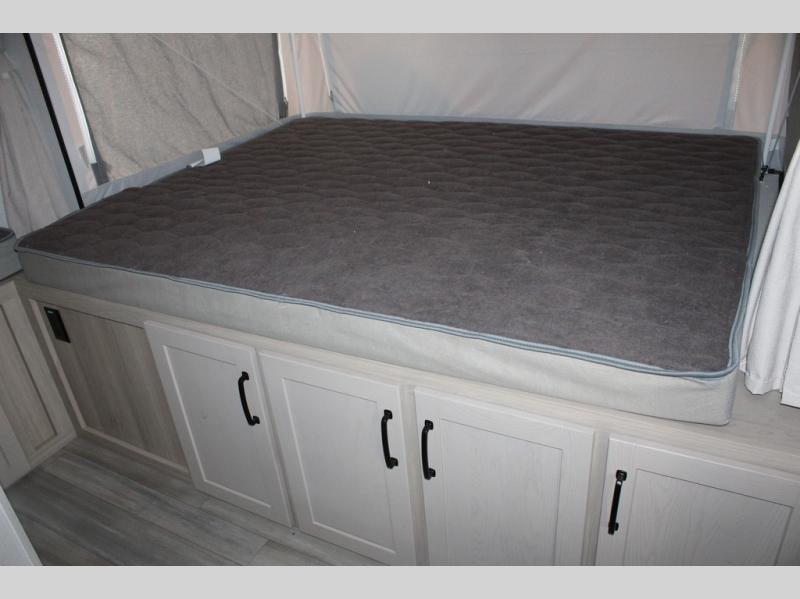 Each Flagstaff Shamrock expandable by Forest River includes an enclosed underbelly, interior and exterior composite sidewall construction, and a vinyl/rubber composite roofing membrane for added durability. The power tongue jack will make hitching up easier than ever, and the torsion axle, Rubber-Ryde suspension and Goodyear Endurance tires will provide smooth towing. You will also appreciate having a 200W roof solar panel with a 1800W inverter, an outside spray port, Keyed-Alike locks, plus many more exterior conveniences. The interior is made to feel more like home with solid wood cabinet doors and drawers, marine grade carpet in the slides, Sedona Wood cabinetry, plus seamless kitchen countertops.