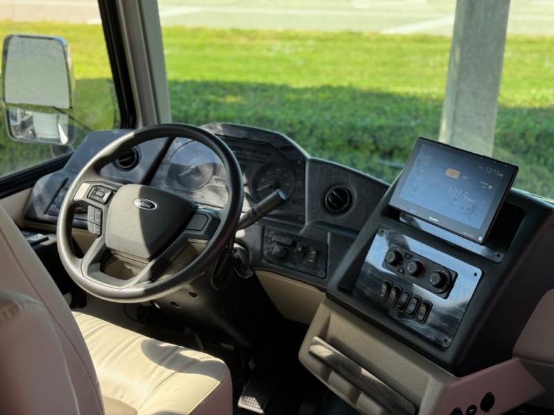 A spacious design and true luxury come together to create these Forest River Georgetown 5 Series Class A gas motorhomes! Their solid surface kitchen countertops, day and night shades throughout, and designer bedspread will have you feeling right at home. The color side and rear cameras help to prevent any dings or bumps while you travel, and the automatic hydraulic leveling jacks will keep your unit leveled where ever you set up. Durable construction consists of a crowned roof, 2" aluminum framed vacuum bonded gel coated sidewalls, plus high density block foam insulation that will allow you to travel in all seasons. You will appreciate the 50 Amp service, two house batteries, and 6,000 watt Yamaha generator to keep you powered up. An outside shower is also included on all models, along with rotocast storage compartments with drains, a power awning, and so much more!