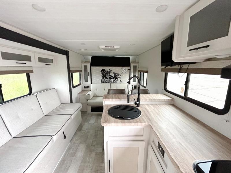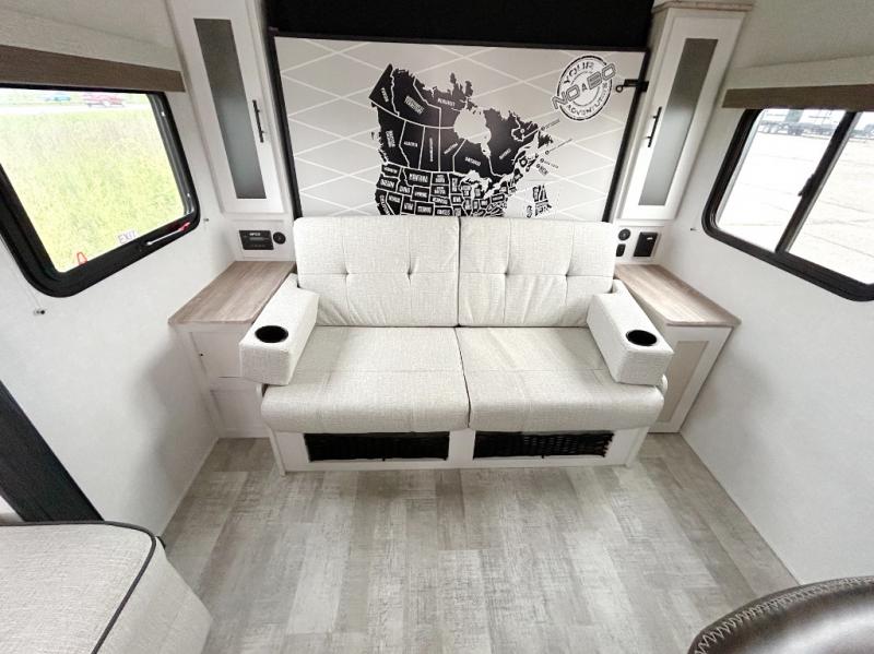 If you want to break free from the travel constraints of standard trailers, then you must choose the Forest River No Boundaries travel trailer or toy hauler because they are rugged and ready for adventure! These trailers come with a Beast Mode package which gives you a Rhino Rack RVT track to bring along your kayaks or fishing equipment, a TST tire pressure monitor system, and USB charging stations to power your electronics, plus more. The Cold Weather package will keep you warm during the cold season. You'll also have aluminum wheels wrapped in all-terrain tires for an exceptional ride.