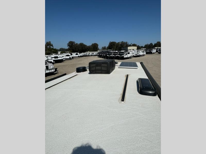 Pack up this very versatile Murphy bed travel trailer and head out to explore! You will love the space saving aspect that a Murphy bed gives you by not increasing the tow length in order to give you a separate bedroom and living space, and you don't even have to make the bed, just fold it up into the wall in the morning! Oversized bunks in the rear corner are perfect for accommodating both children and adults. The kitchen offers everything a cook would need to feed the whole gang and there is even a counter bar area with two stools which will be perfect for breakfast time. There is a booth dinette slide for more dining space, or a place to enjoy a board game or card game when you are inside. Add the optional Unplugged package to take your camping experience to a whole new level. Some features included in this package are 500W+ solar panels, premium Lithium-ion batteries, a 2,000 watt inverter charger, a high-efficiency A/C.