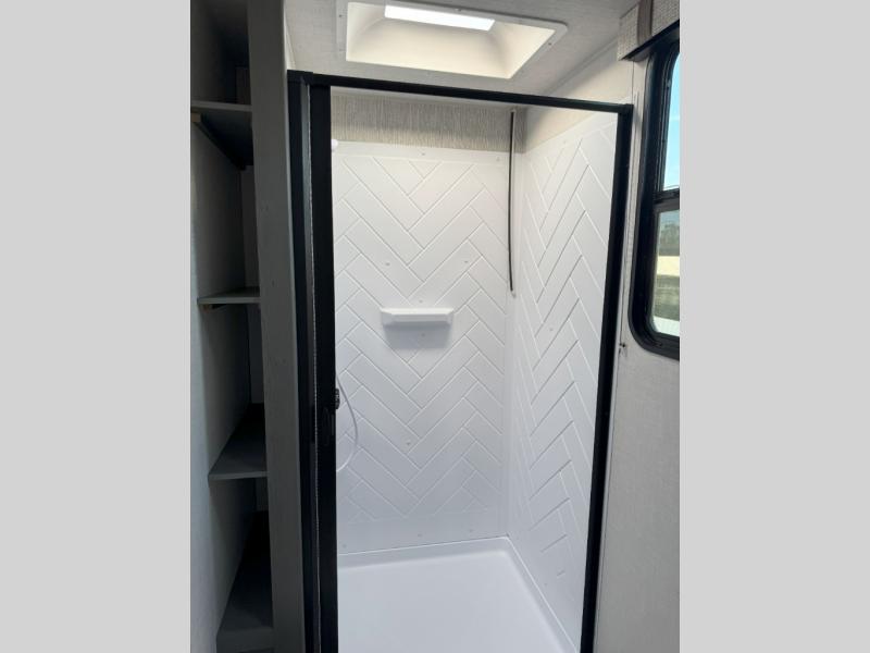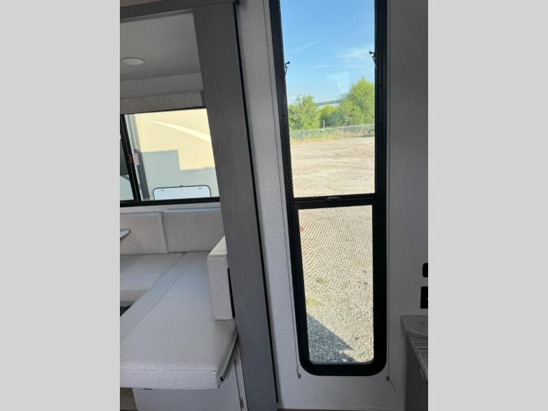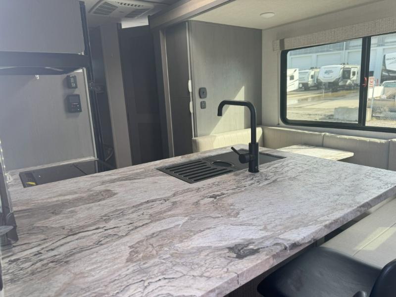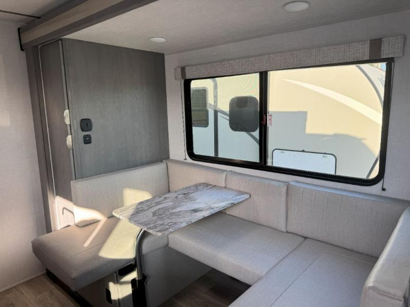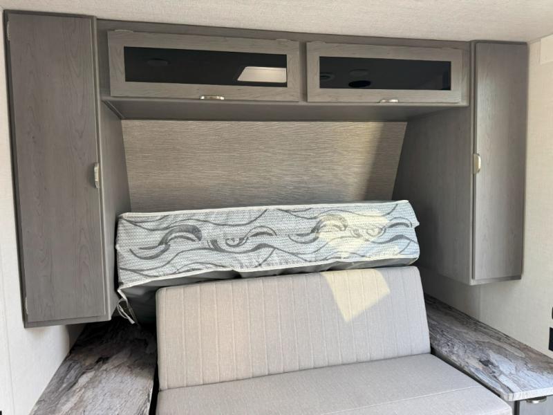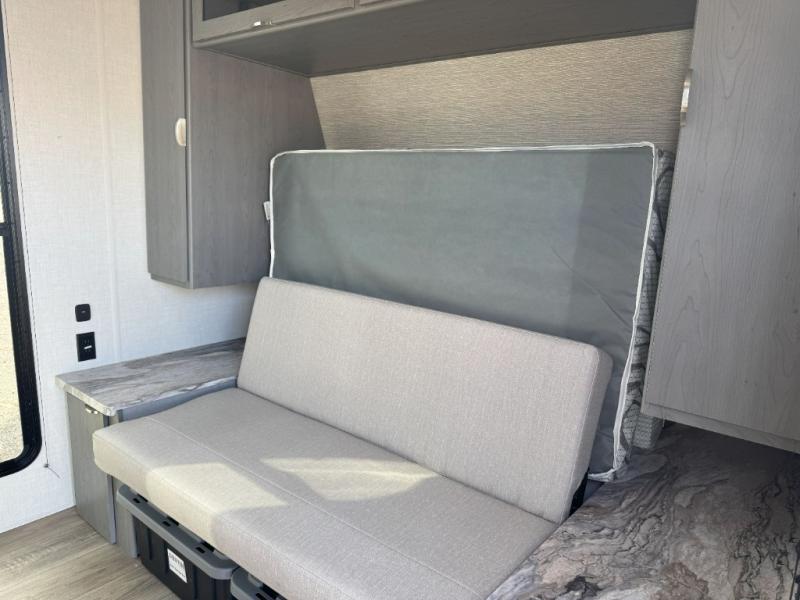 It will be so easy to fall in love this with this travel trailer for eight with its double-size bunks, full bath, and versatile Murphy bed! Whether you're hiking for the day or just relaxing at the u-shaped dinette, you are sure to enjoy every camping trip. The chef of your group will love the upgraded appliance package with an oven, plus there is a dual swinging 12V refrigerator for perishables and a large pantry for snacks within the roadside slide! Your guests can sit at the U-shaped dinette or sofa while dinner is being made, and the kitchen skylight will provide more lighting to your space.