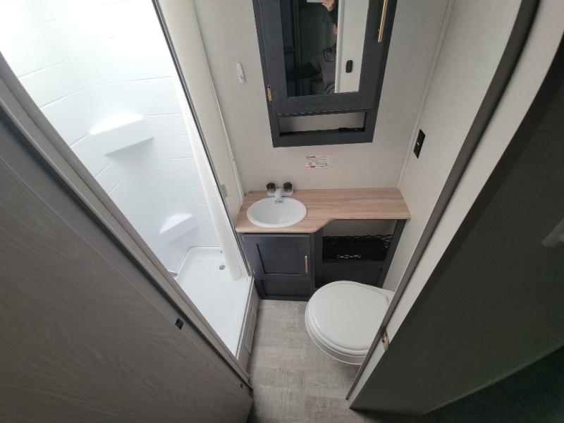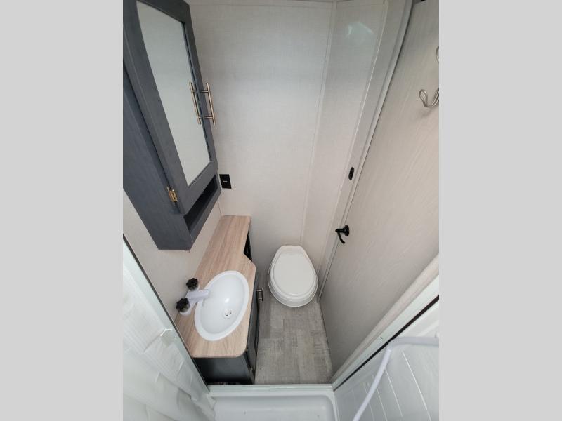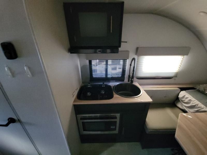 With any R Pod Classic travel trailer by Forest River, you will enjoy at home-comforts and lightweight towing. There are magnetic door catches that will easily keep the door open when you're packing hiking gear or bringing in your luggage. Each model includes 30 Amp service with a detachable power cord, a 20 lb. propane tank with a cover, and a high efficiency roof-mounted air conditioner that will keep you cool during the summer camping months. Inside, you'll find a two burner recessed cooktop with a flush mount glass cover, a convection microwave, and new Cosmetic Graphite interior for a modern look you will love.