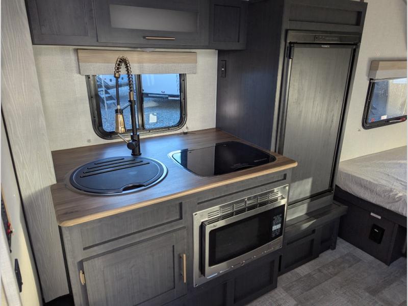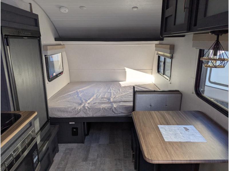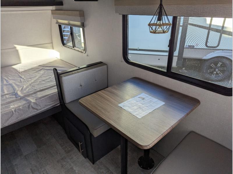 Get ready to travel just about anywhere with this lightweight R-Pod travel trailer! This model is ideal for any couple. There is sleeping space on the front RV queen bed, and the 24" x 75" booth dinette can easily convert into a sleeping spot for another tired camper. The slide out along the roadside helps open up the floor space, plus you will find all of the kitchen amenities here. The spacious full bath in the rear has plenty of room to easily get ready for any adventure that lies ahead. You will also enjoy all of the exterior storage for all of your outdoor camping gear. This unit even includes an LED TV for movie nights!