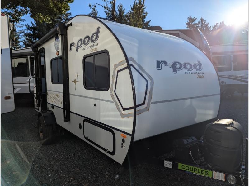 The Forest River R-Pod travel trailer is an excellent choice for lightweight towing! With convenient features like the Azdel composite panels that will completely withstand water damage and designer Carefree flooring that will make it easy to clean up messes, this is a great choice for easy living. The R-Pod has LED exterior lights, outside speakers, and self-adjusting brakes for convenience. Step inside to find decorative window treatments, shaker style cabinetry, seamless kitchen countertops, and a 6' 6" interior height to provide ample room to relax. These models also include the Hood River Edition with advanced ground clearance, X-treme 15" off-road tires, and more, plus the Beast Mode Value Package with all new premium exterior graphics, exclusive aluminum wheel upgrade, a tire pressure monitor system, and the list continues. You can even add the optional Unplugged Package that will allow you to go off-grid when the adventure calls for it!