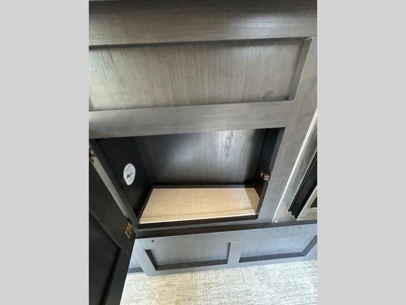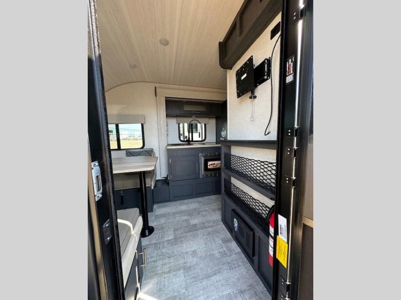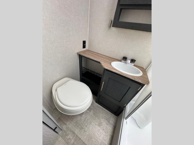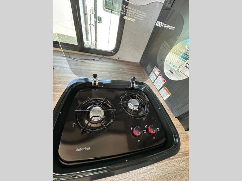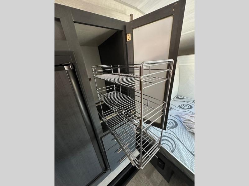 With any R Pod Classic travel trailer by Forest River, you will enjoy at home-comforts and lightweight towing. There are magnetic door catches that will easily keep the door open when you're packing hiking gear or bringing in your luggage. Each model includes 30 Amp service with a detachable power cord, a 20 lb. propane tank with a cover, and a high efficiency roof-mounted air conditioner that will keep you cool during the summer camping months. Inside, you'll find a two burner recessed cooktop with a flush mount glass cover, a convection microwave, and new Cosmetic Graphite interior for a modern look you will love.