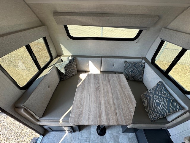 For the couple who is ready to camp anytime and anywhere, you will love how easy it is to travel with this R Pod travel trailer. You can easily set up the single slide to give you more room to move about. Within this slide, you will find the kitchen amenities, which include a two-burner cooktop, convection microwave and a refrigerator. You can enjoy your meals at the U-shaped dinette, and this furniture can double as a sleeping space, if needed. Along the front is an RV queen bed where you can rest up for another day of fun and adventure. With all of the exterior storage, you can bring along all of your necessary camping items and more!