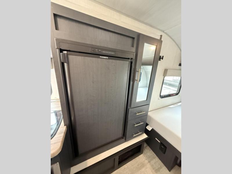 For the couple who is ready to camp anytime and anywhere, you will love how easy it is to camp with this R-Pod travel trailer. This unit features a single slide giving you room to move about. Within this slide, you will find the kitchen amenities which include a two-burner cooktop and a gas/electric refrigerator. You can enjoy your meals at the U-shaped dinette, and this can double as a sleeping space, if needed. Along the front of this model is an RV queen bed where you can rest up for another day of fun and adventure, and with all of the exterior storage, you can easily bring along all of your necessary camping items and more!