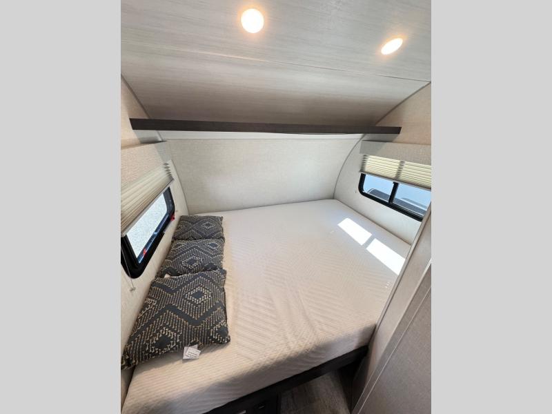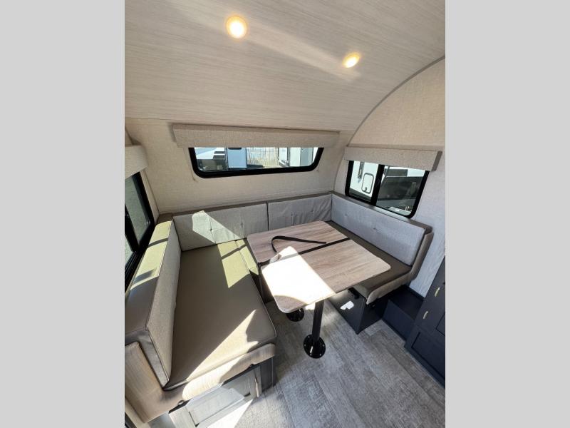 For the couple who is ready to camp anytime and anywhere, you will love how easy it is to travel with this R Pod travel trailer. You can easily set up the single slide to give you more room to move about. Within this slide, you will find the kitchen amenities, which include a two-burner cooktop, convection microwave and a refrigerator. You can enjoy your meals at the U-shaped dinette, and this furniture can double as a sleeping space, if needed. Along the front is an RV queen bed where you can rest up for another day of fun and adventure. With all of the exterior storage, you can bring along all of your necessary camping items and more!