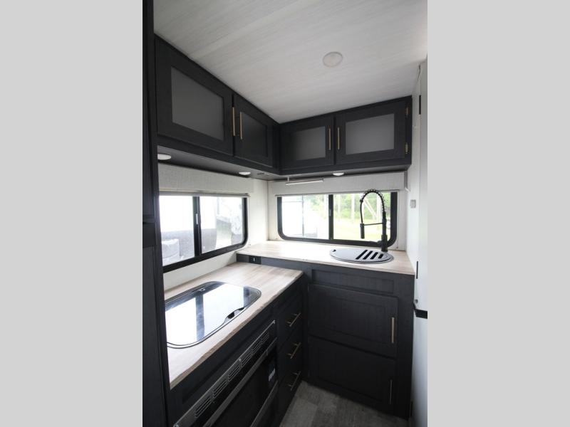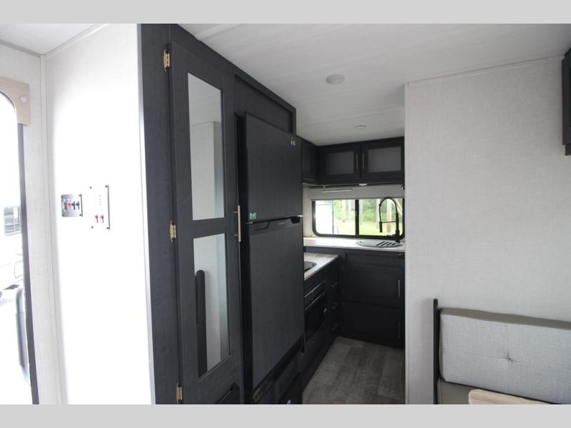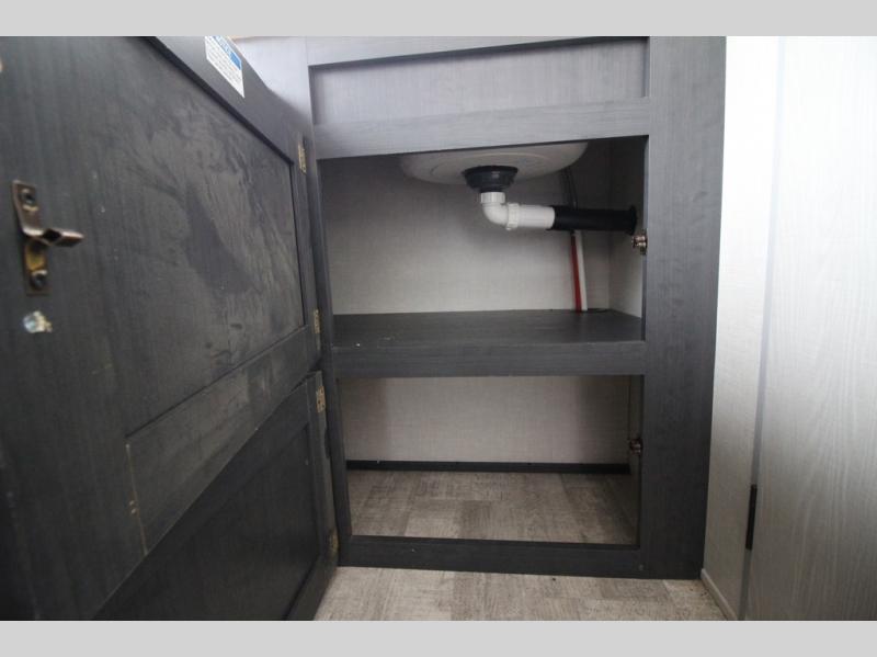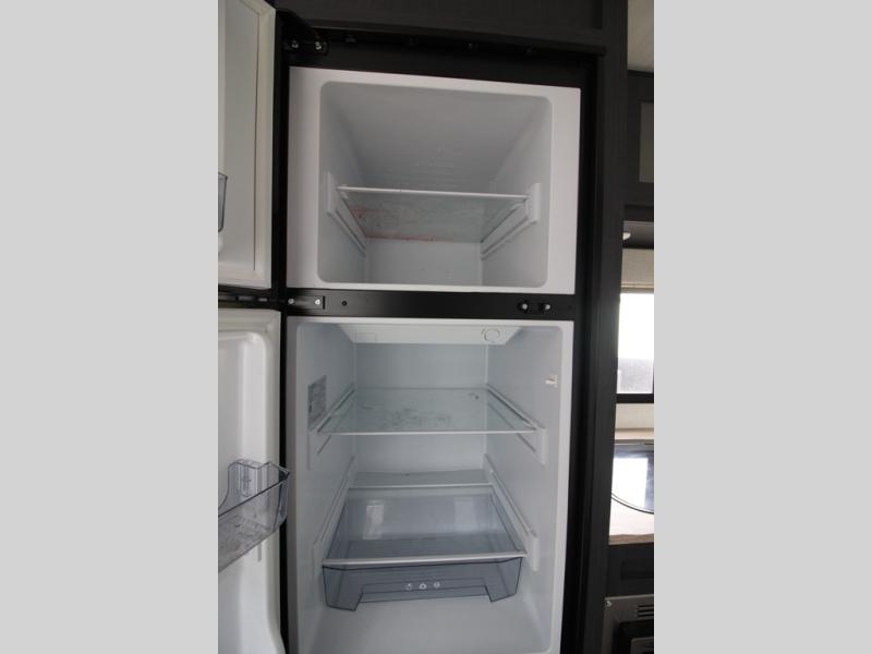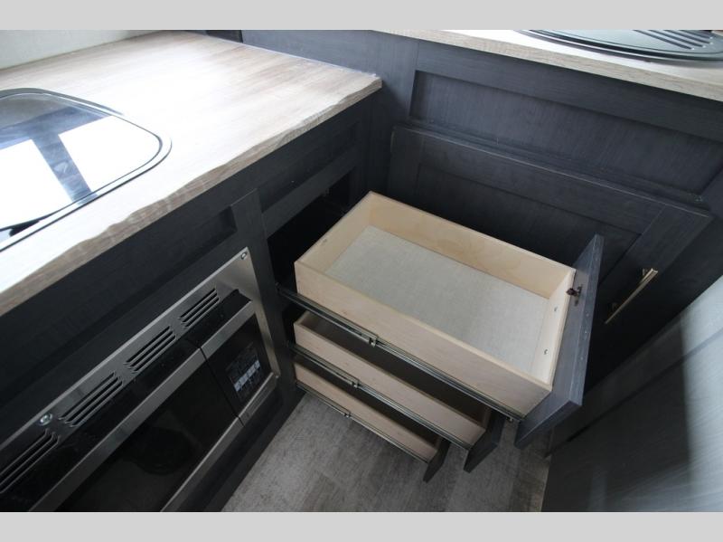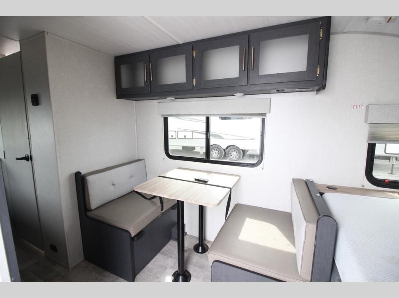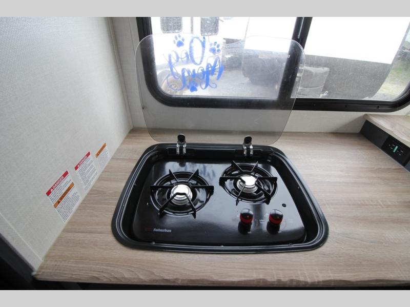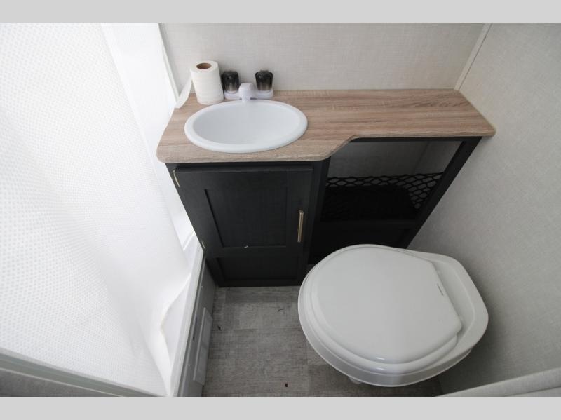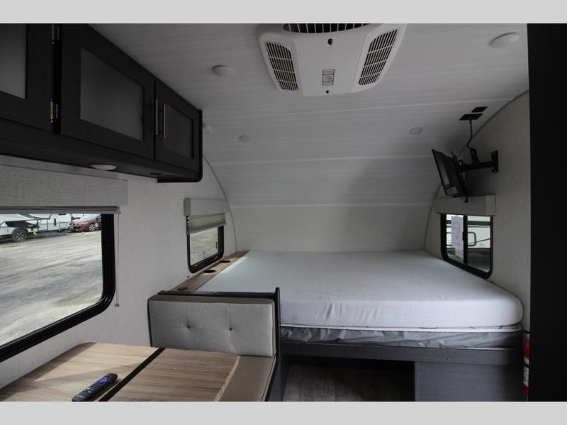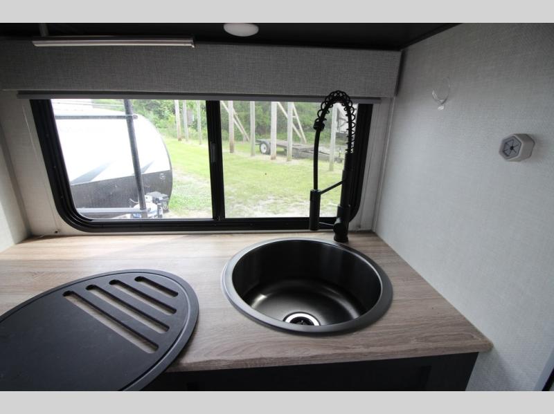With any R Pod Classic travel trailer by Forest River, you will enjoy at home-comforts and lightweight towing. There are magnetic door catches that will easily keep the door open when you're packing hiking gear or bringing in your luggage. Each model includes 30 Amp service with a detachable power cord, a 20 lb. propane tank with a cover, and a high efficiency roof-mounted air conditioner that will keep you cool during the summer camping months. Inside, you'll find a two burner recessed cooktop with a flush mount glass cover, a convection microwave, and new Cosmetic Graphite interior for a modern look you will love.