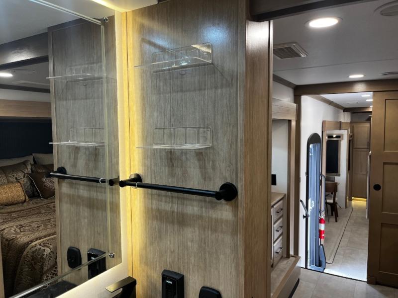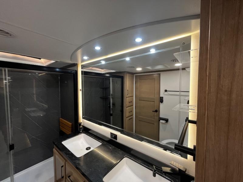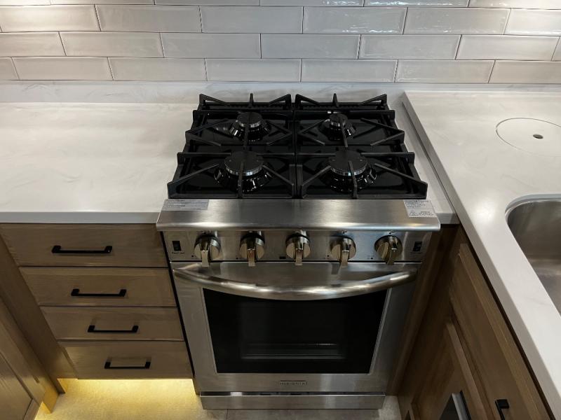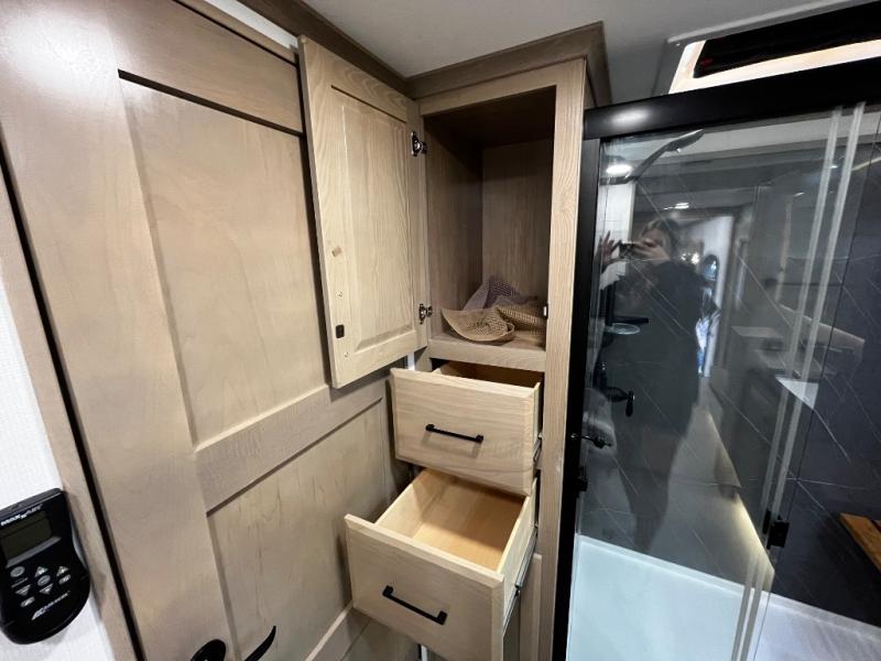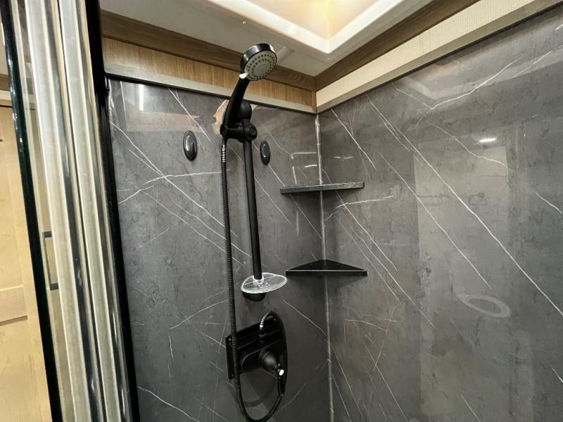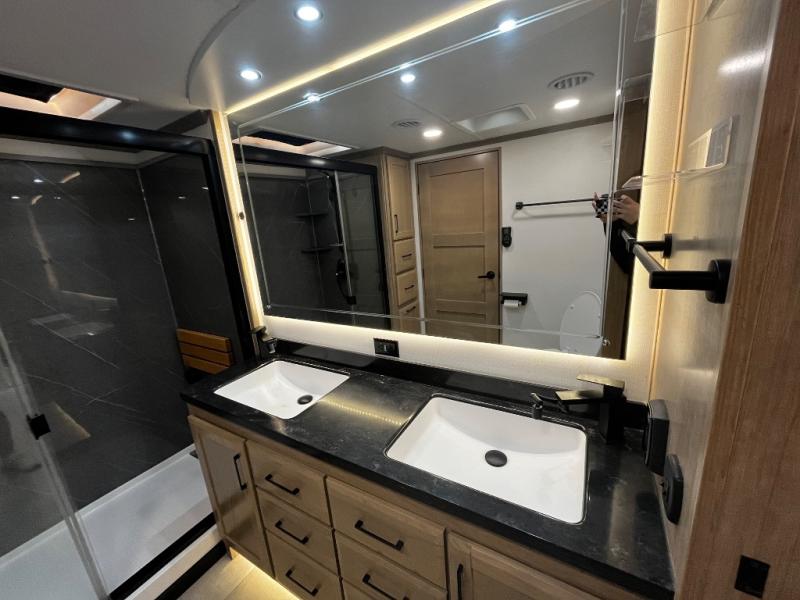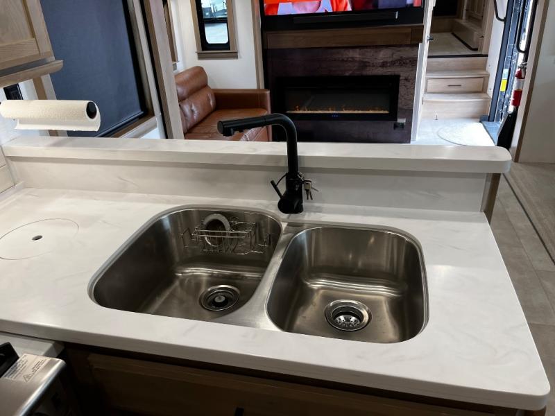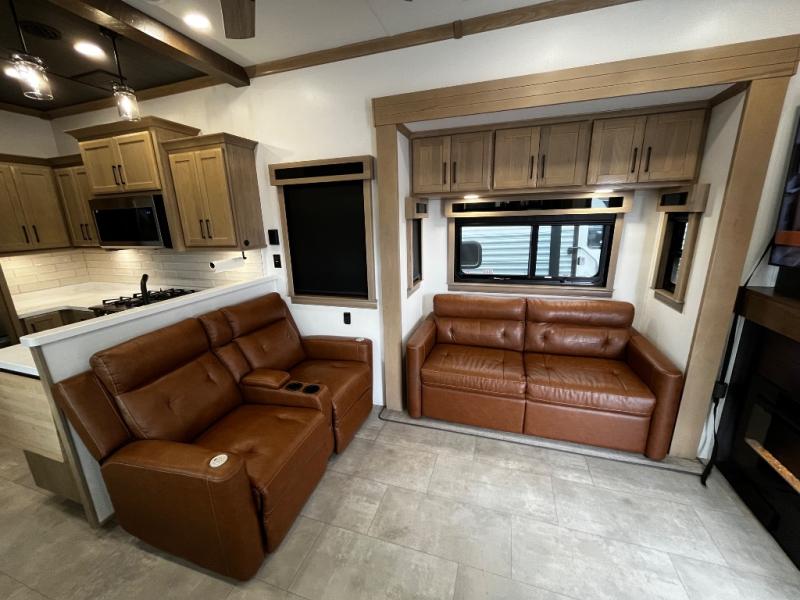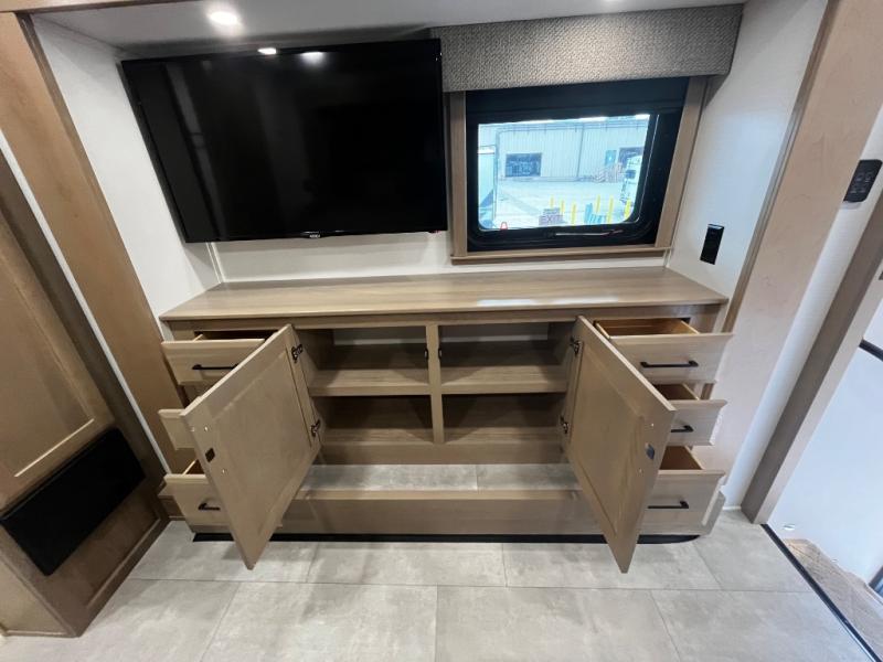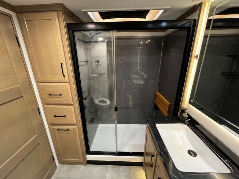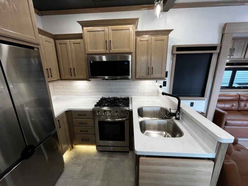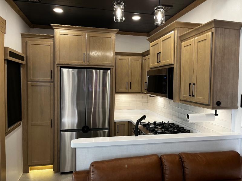 The Forest River RiverStone fifth wheels and toy haulers are luxurious units that have it all! You'll find an automatic six-point hydraulic level-up system to keep your unit in place, and there is preparation for a four-camera observation system. The King Wi-Fi Max router and omni-directional Wi-Fi antenna/extender will help you stay connected to the outside world, and you'll never have to overpack again since the Splendid “Astral” stackable washer and dryer will let you clean the small amount of clothes you've brought with you. Another high luxury is the Fischer Paykal dishwasher which will allow you to spend more time enjoying your camp life and less time cleaning up. Each unit is built with an LCI Road Armour suspension system, dual-pane frameless windows, a full docking station, a 190W solar panel, and a Firefly integrated touch control system.