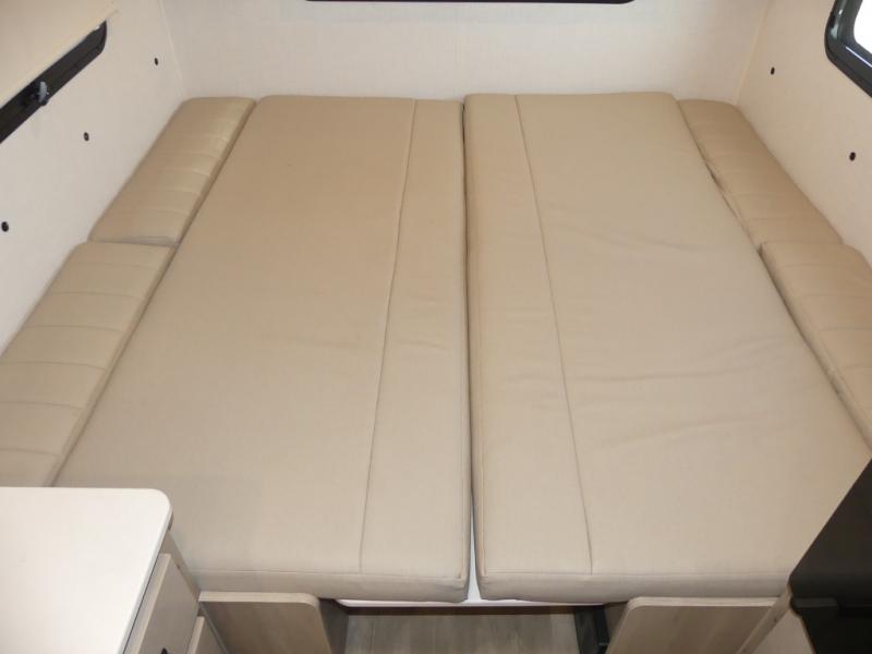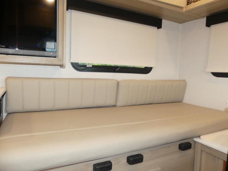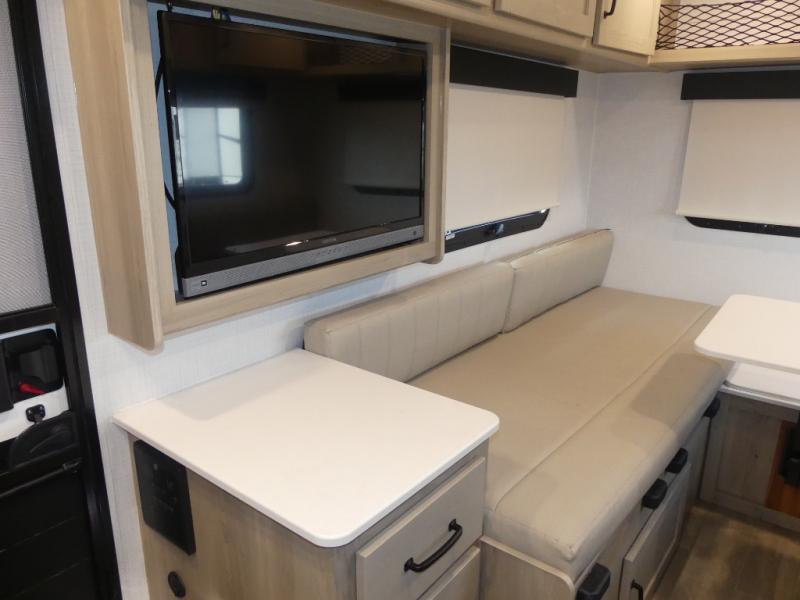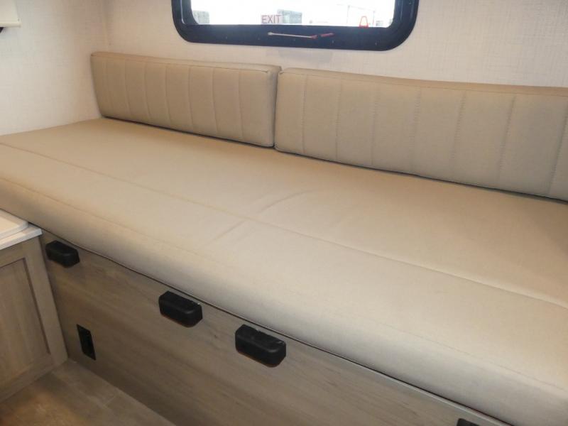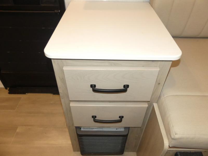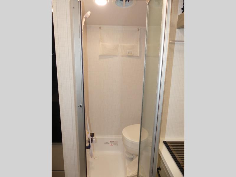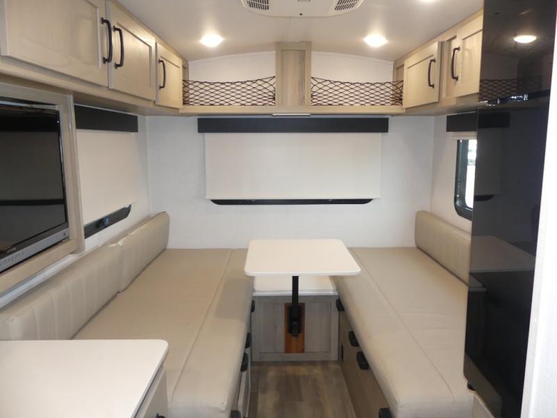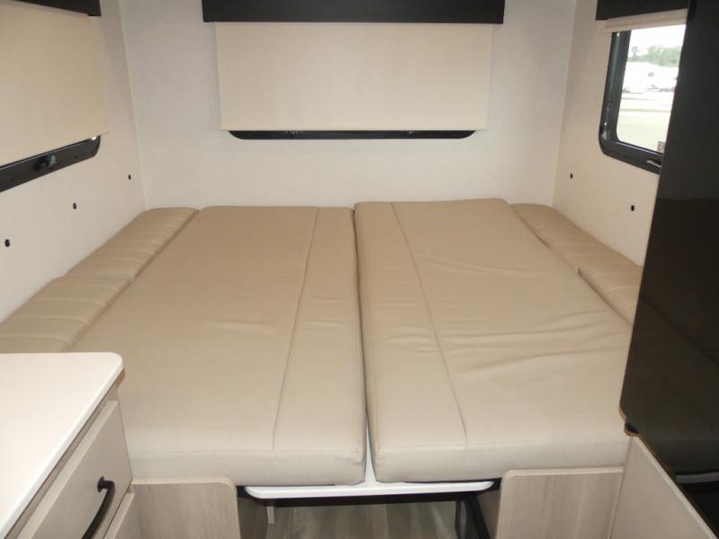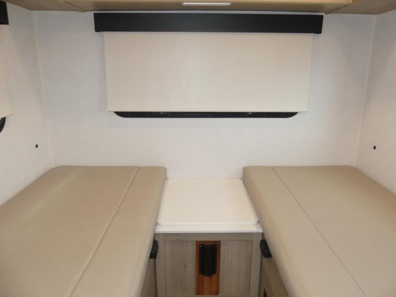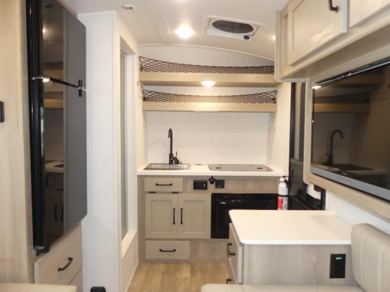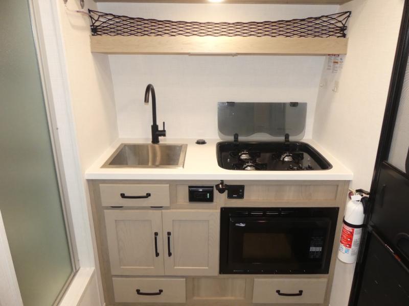It's easy to see why this model is know a the "Swiss Army Knife" of RVs. It may be the smallest walkable trailer in the lineup, but it doesn't skim on features. The twin beds convert to a king-size bed for your comfort, and there is even a 32" 12V TV to enjoy in the evenings. The kitchen includes a three burner cooktop, a convection microwave, plus a 12V refrigerator for perishables. You'll find overhead compartments for your valuables, and exterior storage for your hiking gear!