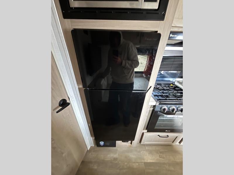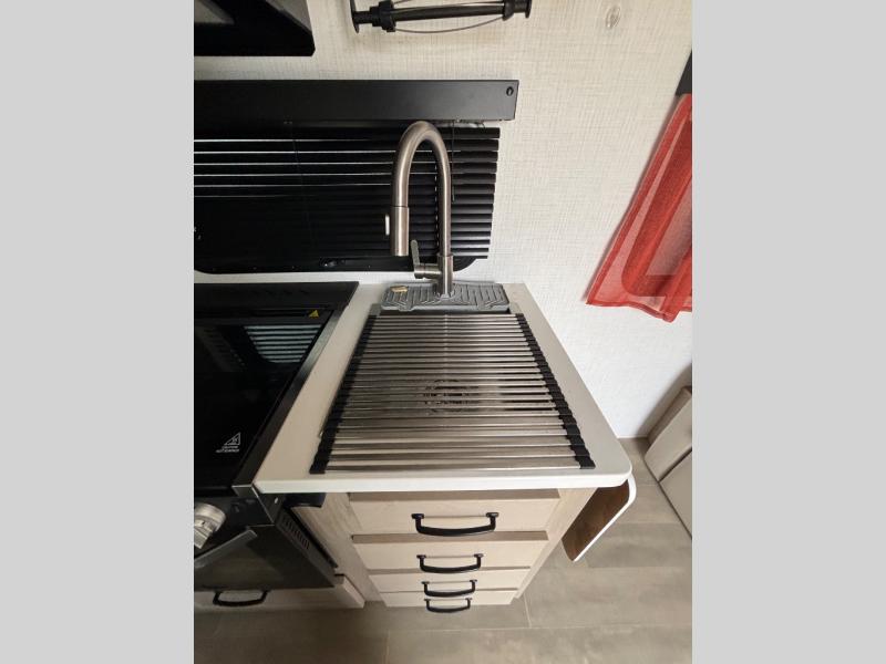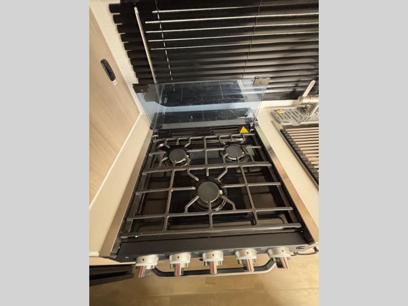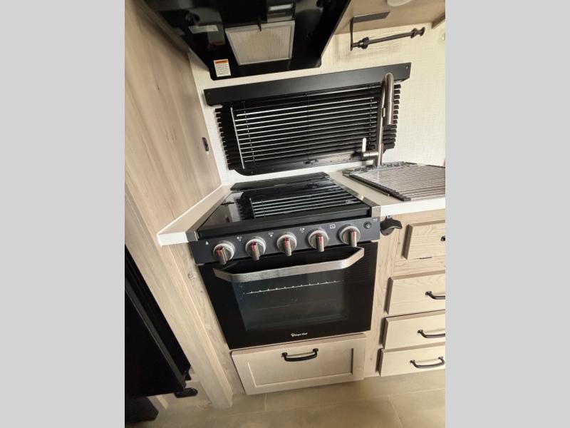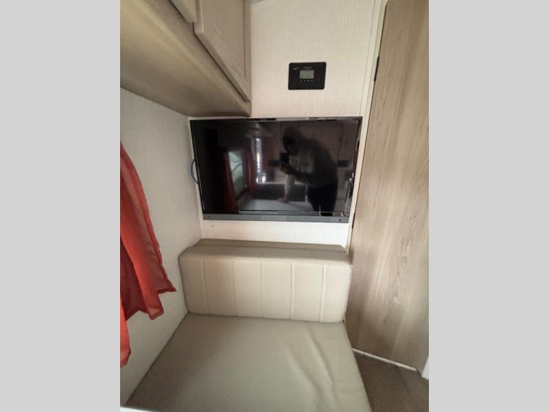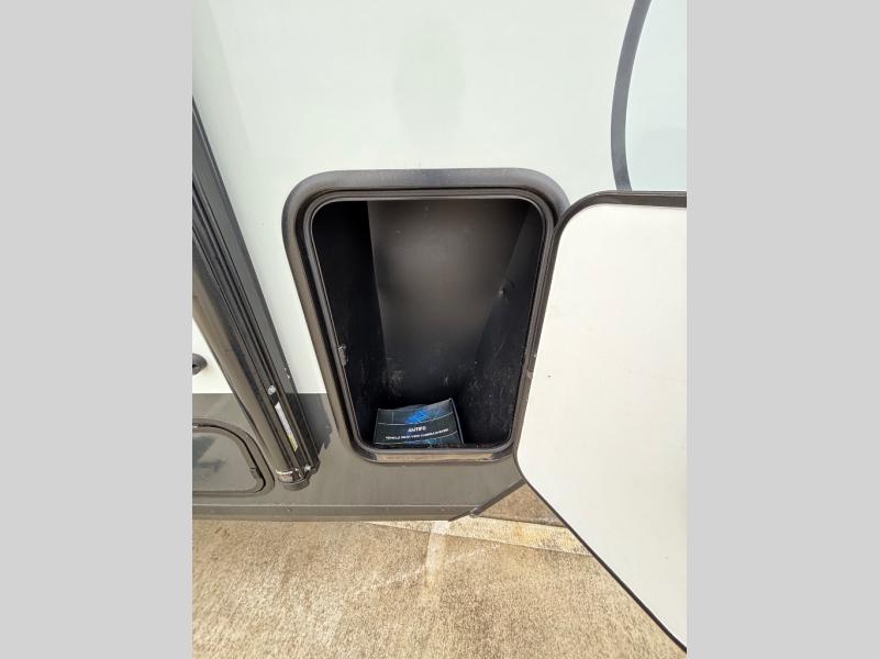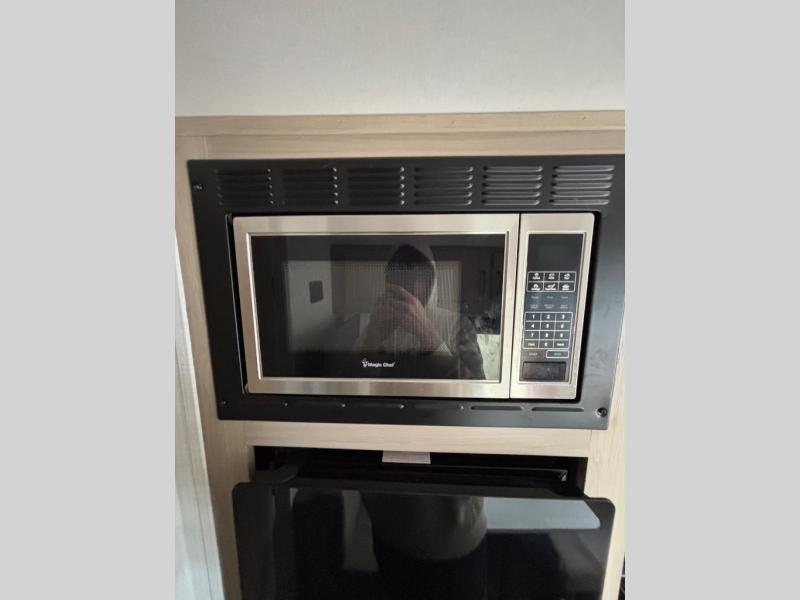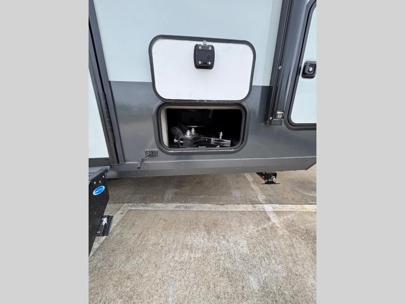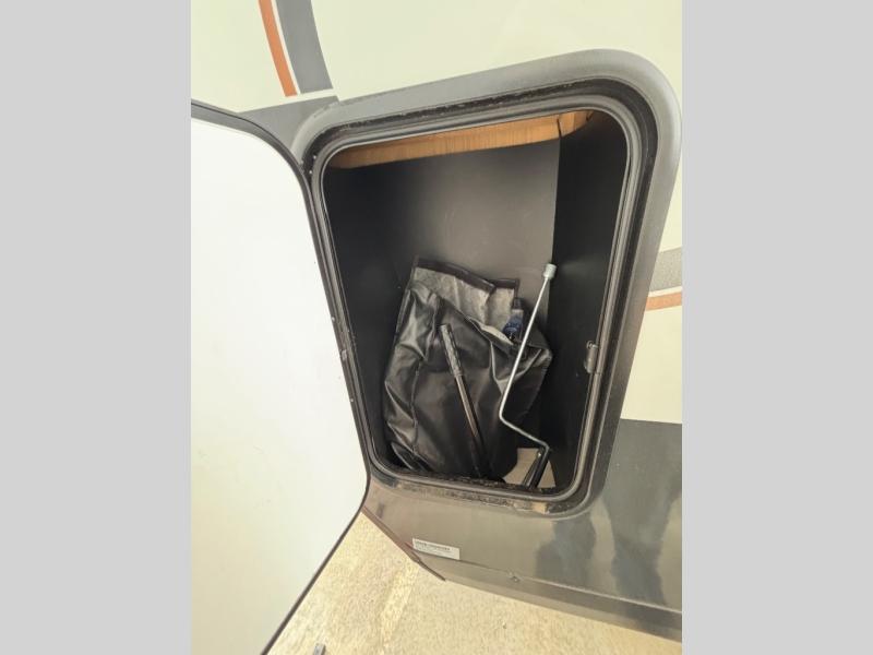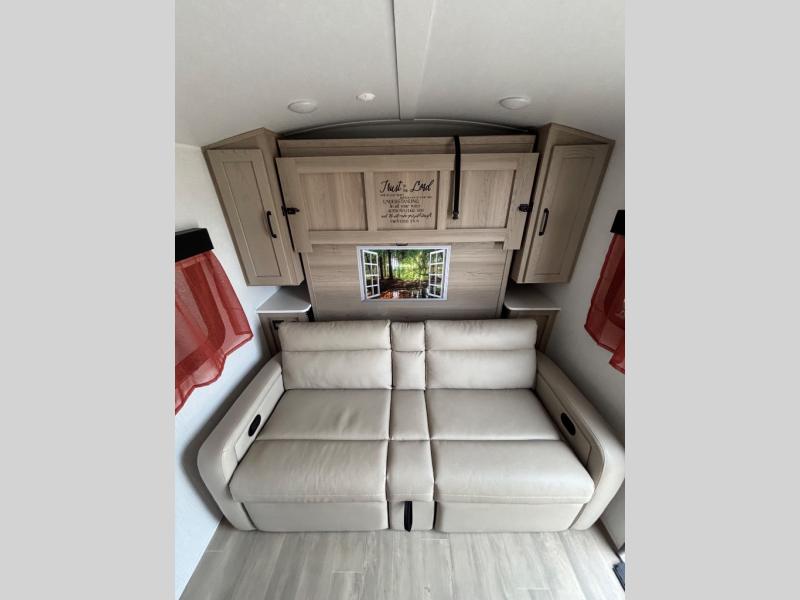You will love how versatile this travel trailer is thanks to the Murphy bed up front. After you've had a great night's rest, just fold it up to relax on the 72" sofa. This will give the chef more space in the morning to prepare breakfast on the three burner cooktop or in the microwave oven. There is a 32" booth dinette to dine at, or you may just want to take your plate outdoors under the 14' power awning. The full rear bath includes a large linen closet to store clean towels and there is a Showermiser Water Saver you are sure to appreciate. You will appreciate a pass-through storage, plus additional exterior storage so you can bring along hiking gear, water tubes, and fishing poles! The optional Power Package available on this model includes three 200W solar panels, a 30 Amp solar charge controller, two Mastervolt smart remotes, and more off-grid features!